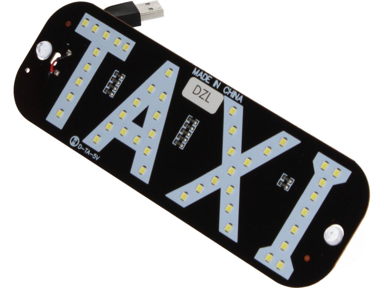LED světelná značka taxi 19 x 17 cm je placatá, oválná deska, která obsahuje 45 LED diod v podobě nápisu TAXI. Tato světelná LED značka je vhodná nejen pro řidiče taxi služby, ale i pro milovníky a obdivovatele těchto aut nebo i motorek. LED světelná značka taxi o rozměrech 14 x 7 cm x 1 mm je dodávána v černé barvě se zelenými LED diodami. Instalace je velmi jednoduchá. Deska se jen přisaje přísavkami (které jsou součástí balení) kamkoliv na okno.