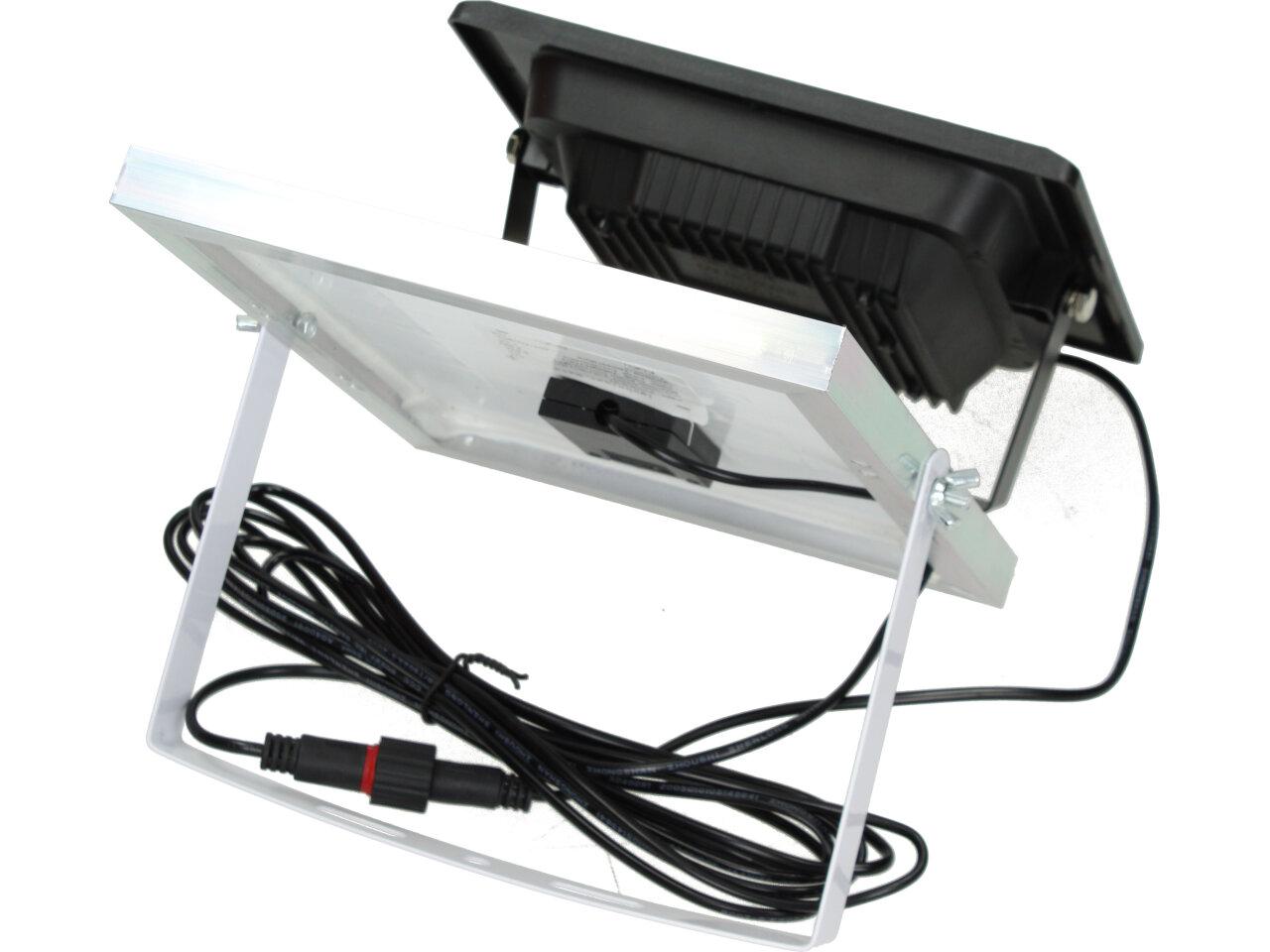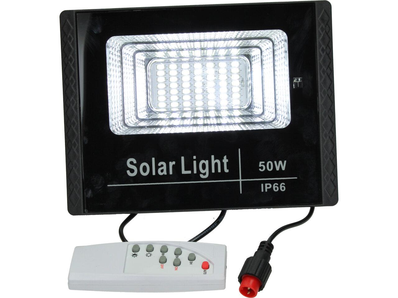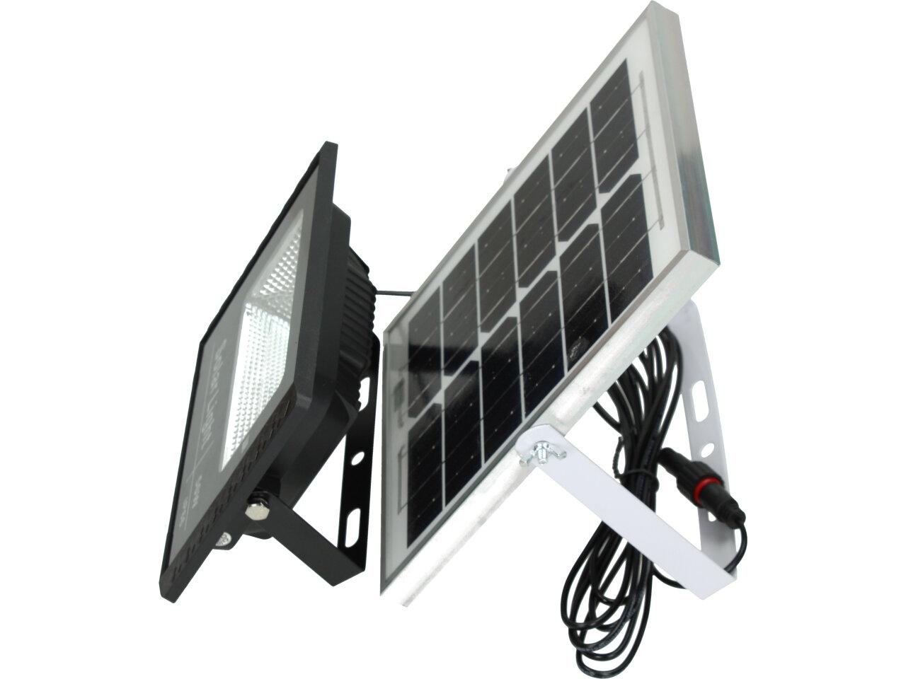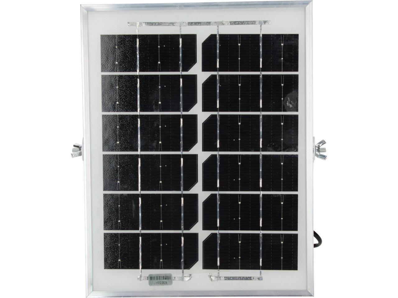 Solární osvětlovací LED technika Reflektor 50W se solárním panelem a dálkovým ovladačem. Díky oddělenému solárnímu panelu můžete používat třeba v karavanu, pod stanem, nebo vjezdové bráně. Solární reflektor o výkonu 50W svítí na vzdálenost cca 6 metrů. U solárního systému lze pomocí dálkového ovladače nastavit automatické zapnutí při setmění, stálé svícení a svícení na daný časový úsek. Pracovní doba na plné nabití cca 6-8 hodin. Spojovací materiál, držáčky a šroubky jsou součástí balení.
