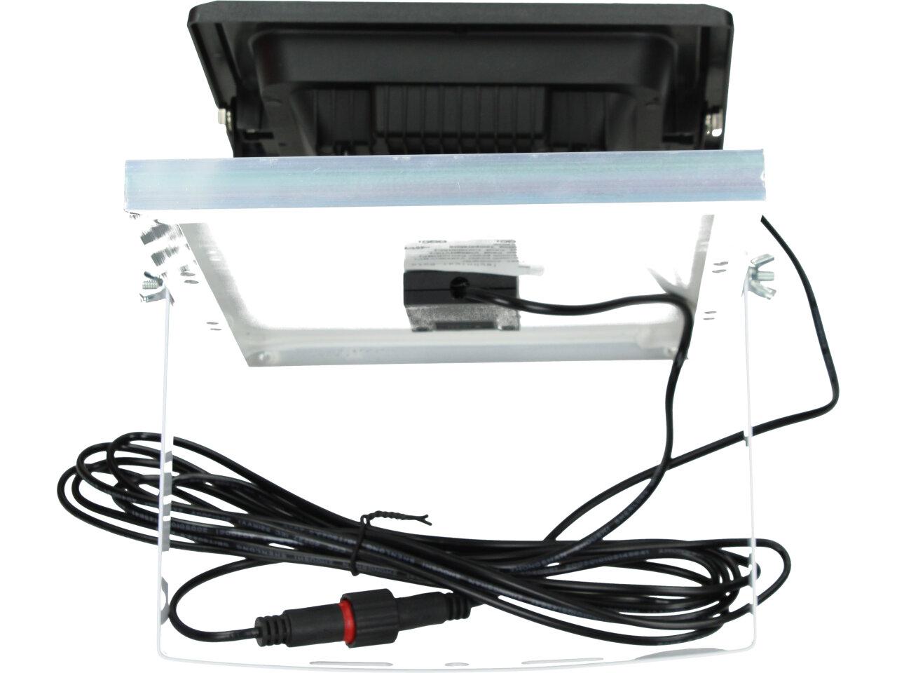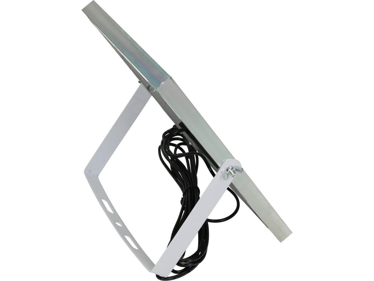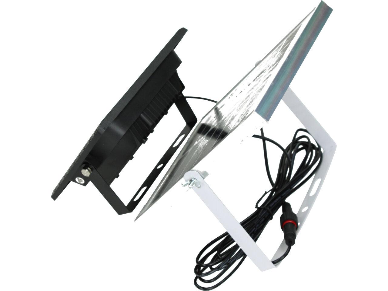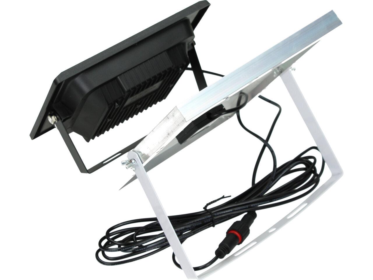 Solární osvětlovací LED technika Reflektor 50W se solárním panelem a dálkovým ovladačem. Díky oddělenému solárnímu panelu můžete používat třeba v karavanu, pod stanem, nebo vjezdové bráně. Solární reflektor o výkonu 50W svítí na vzdálenost cca 6 metrů. U solárního systému lze pomocí dálkového ovladače nastavit automatické zapnutí při setmění, stálé svícení a svícení na daný časový úsek. Pracovní doba na plné nabití cca 6-8 hodin. Spojovací materiál, držáčky a šroubky jsou součástí balení.