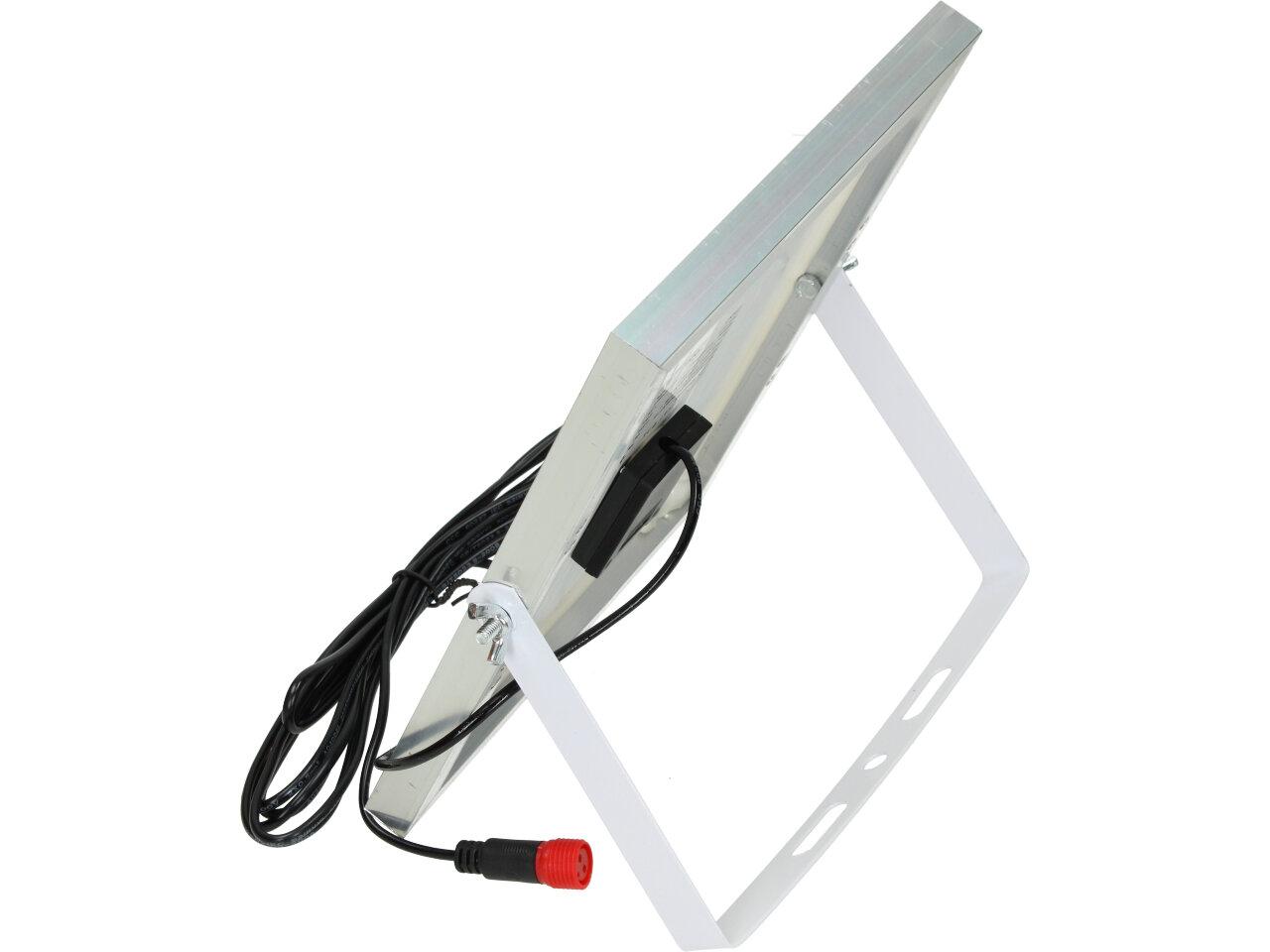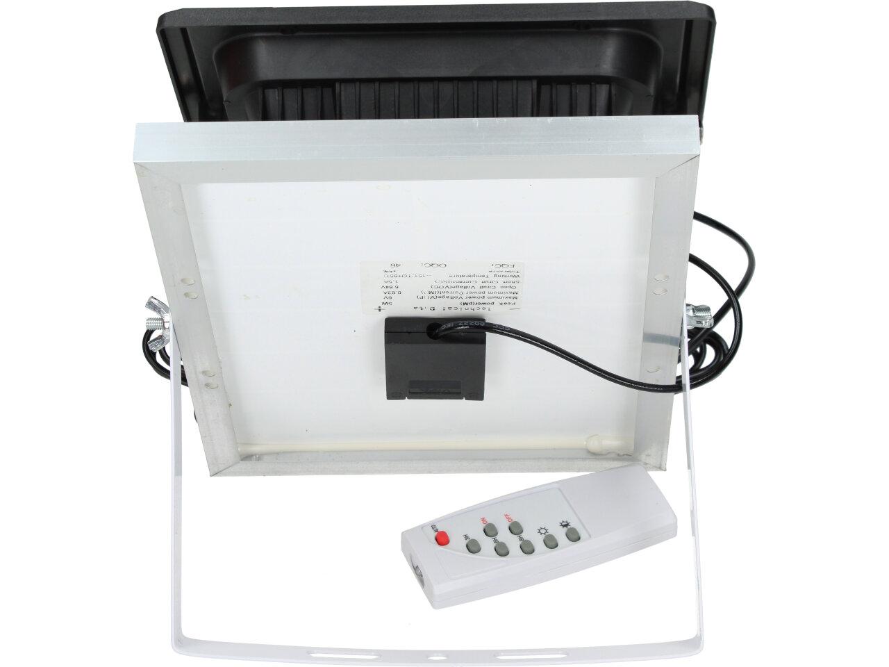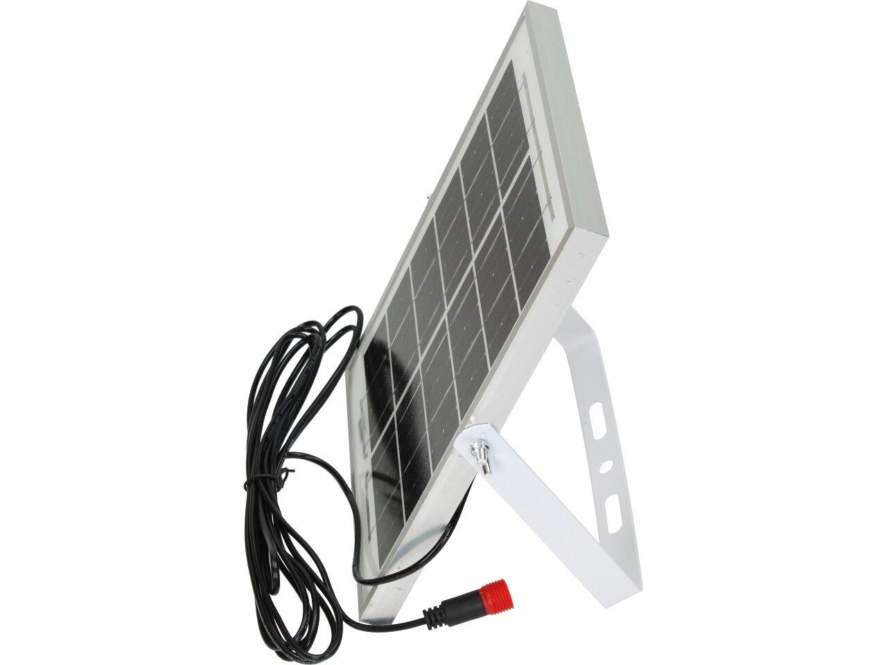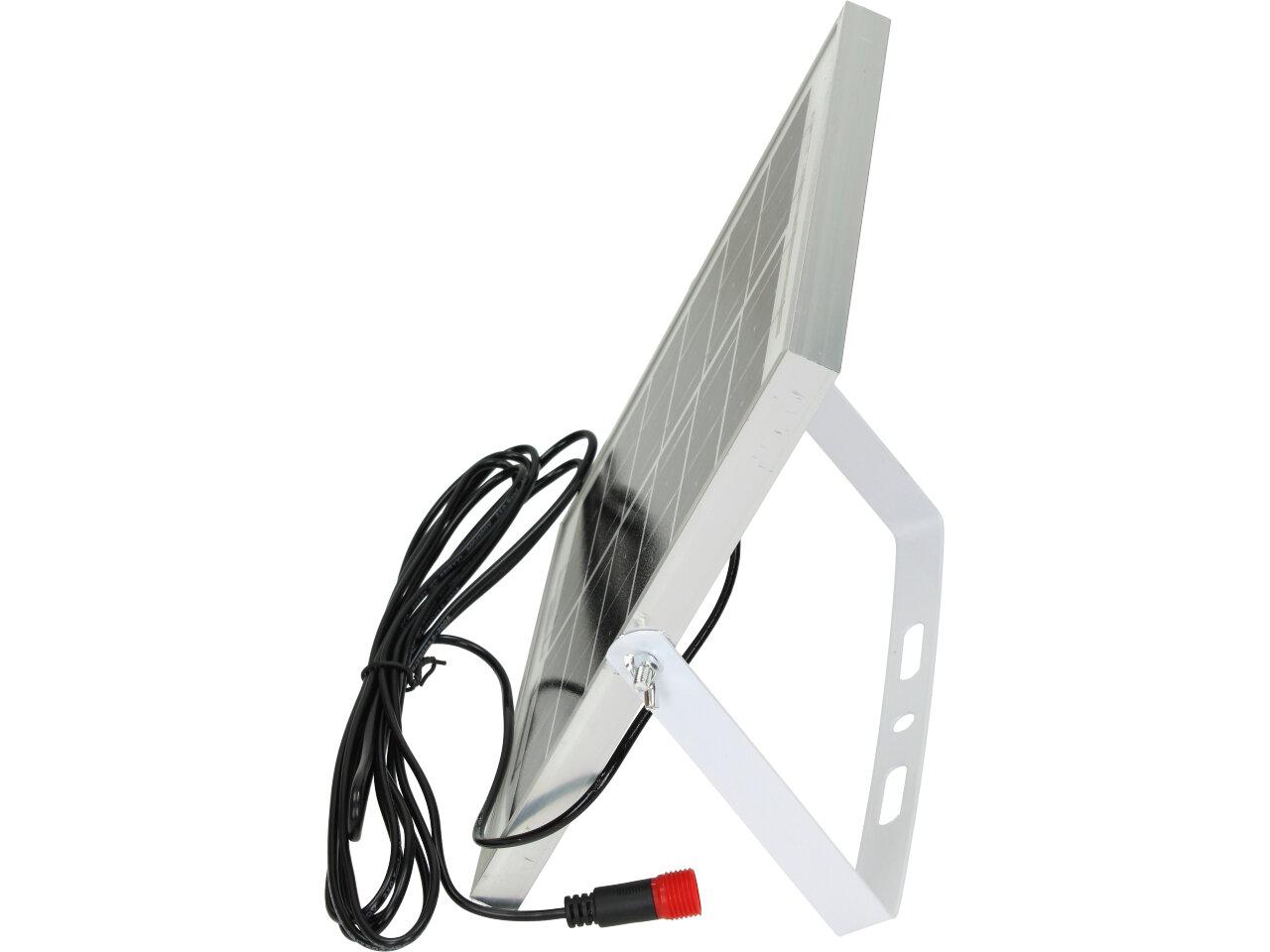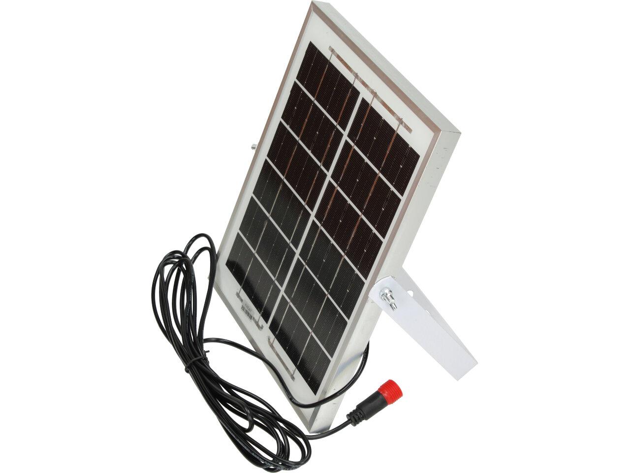 Solární osvětlovací LED technika Reflektor 100W se solárním panelem a dálkovým ovladačem. Díky oddělenému solárnímu panelu můžete používat třeba v karavanu, pod stanem, nebo vjezdové bráně. Solární reflektor o výkonu 1000W svítí na vzdálenost cca 6 metrů. U solárního systému lze pomocí dálkového ovladače nastavit automatické zapnutí při setmění, stálé svícení a svícení na daný časový úsek. Pracovní doba na plné nabití cca 6-8 hodin. Spojovací materiál, držáčky a šroubky jsou součástí balení.