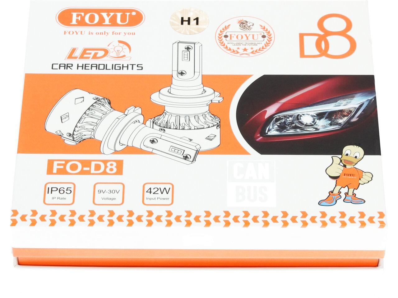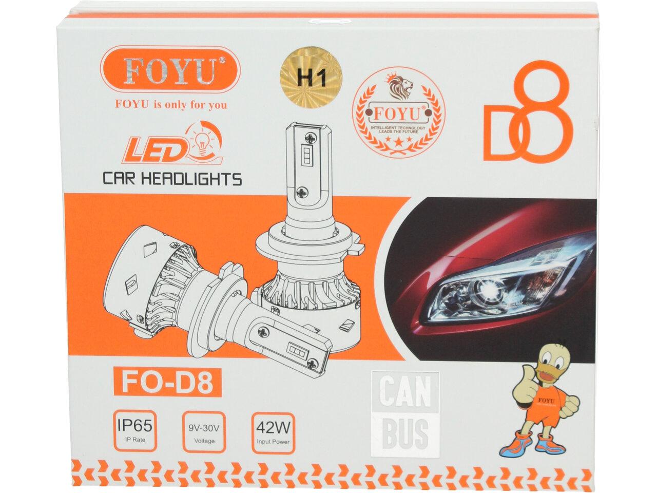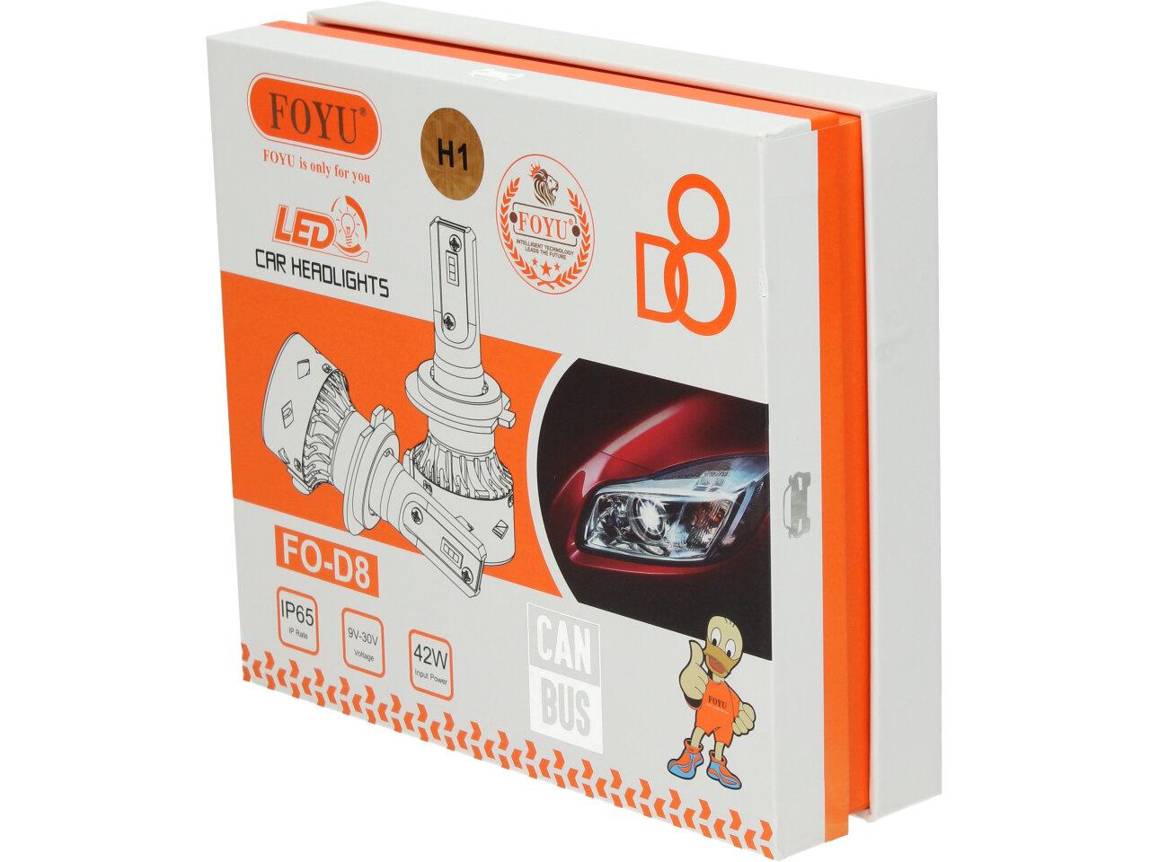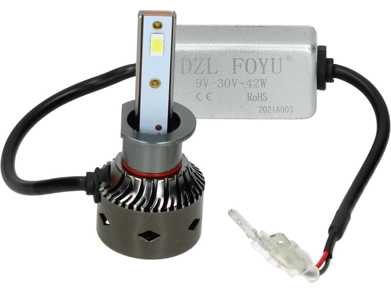 Velice odolná LED H1 D8 žárovka s barvou světla 6000K (studená bílá) sada 2 kusy do světlometu do auta na 9V, 30V jako náhrada za klasickou nevýkonou žárovku H1.