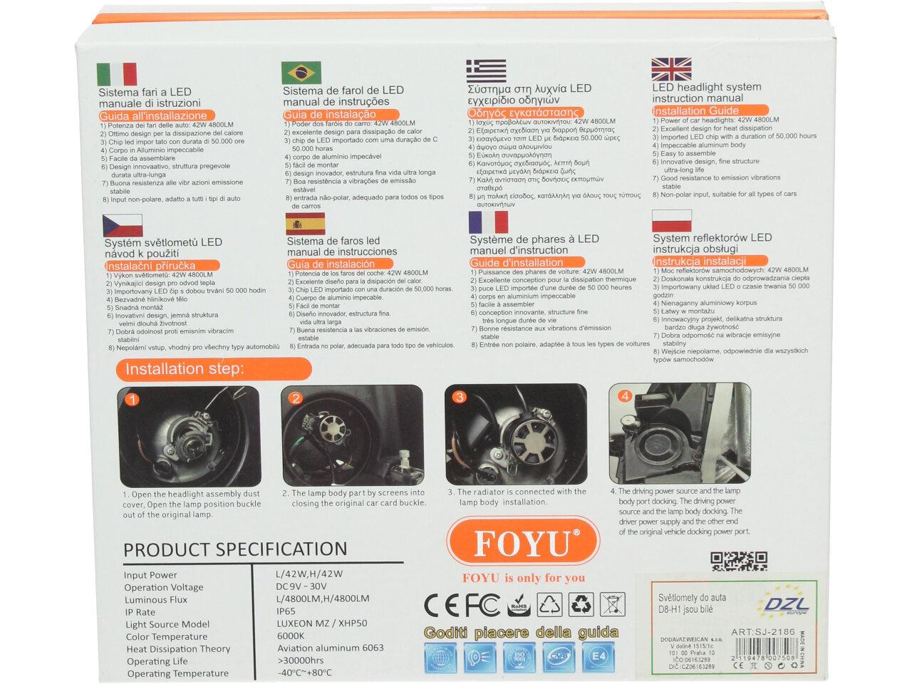 Na H1 žárovka LED D8 6000K sada 2 kusy poskytujeme záruku 24 měsíců.