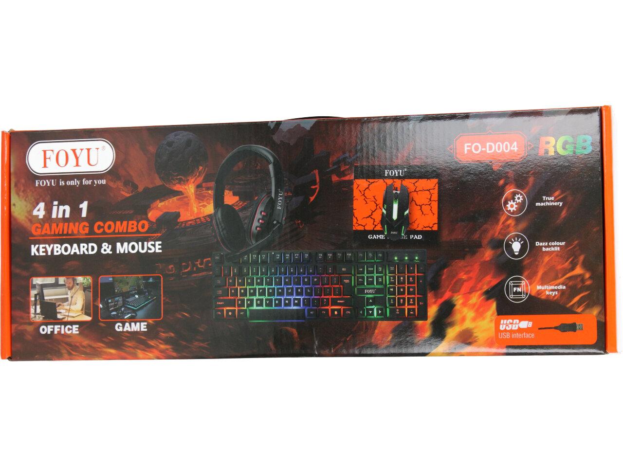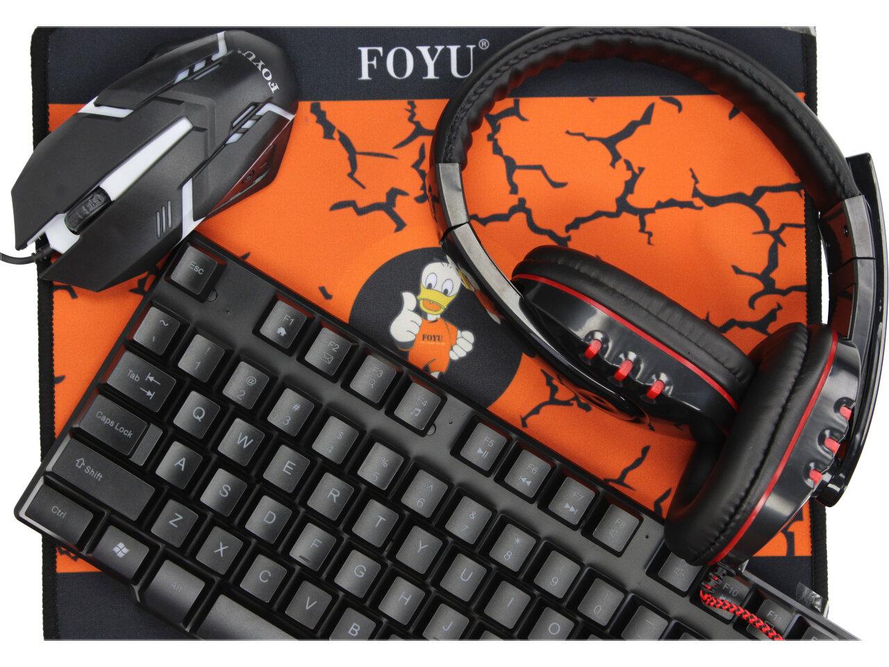 Hrací set od značky Foyu kombo 4v1 obsahuje hrací klávesnici, podložku pod myš, myš a hrací sluchátka s mikrofonem. Skvělý kvalitní set na hraní, pro milovníky her s podsvícením.