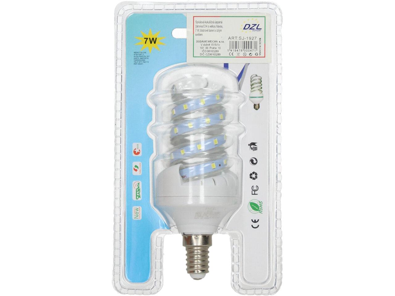 Úsporná žárovka 7W Spiral Led s paticí E14 je kvalitní náhrada za 60W klasickou žárovku. Žárovka je ve skleněné trubici, umožňující dobré chlazení LED diod, které mají dlouhou životnost. Žárovka je určena na napětí 220V a vyzařuje teplotu světla 6500 K, to je studená bílá. Úsporná žárovka 7W Spiral s paticí E14 je LED žárovka klasického tvaru s tím rozdílem, že jsou LED CHIPY ve skleněné trubici ve tvaru baňky s nejpoužívanějším závitem E14, které svítí bílým světlem (tzv. bílá studená).