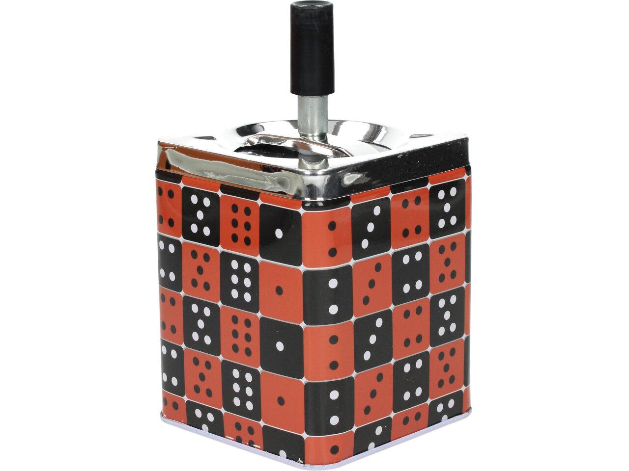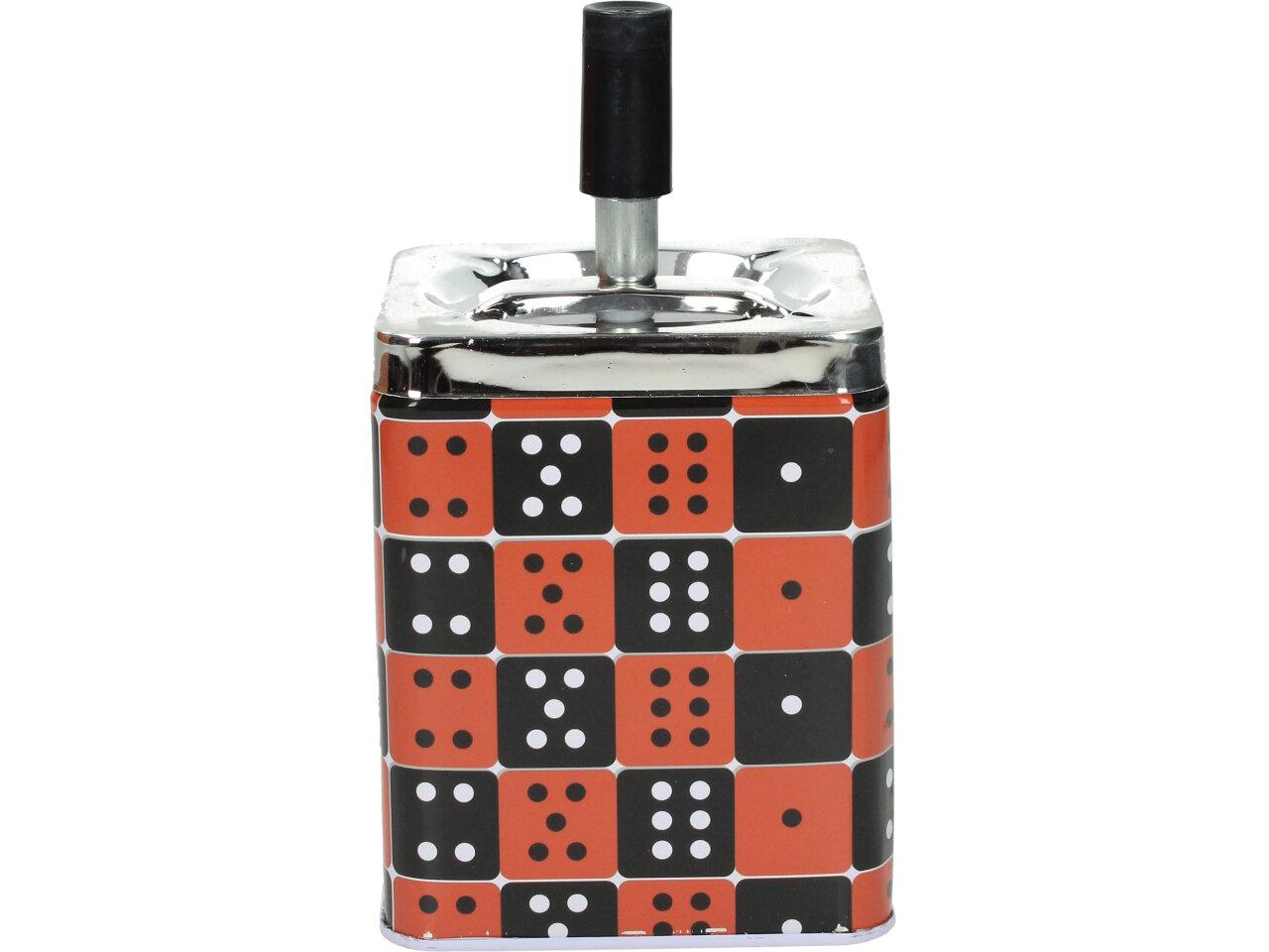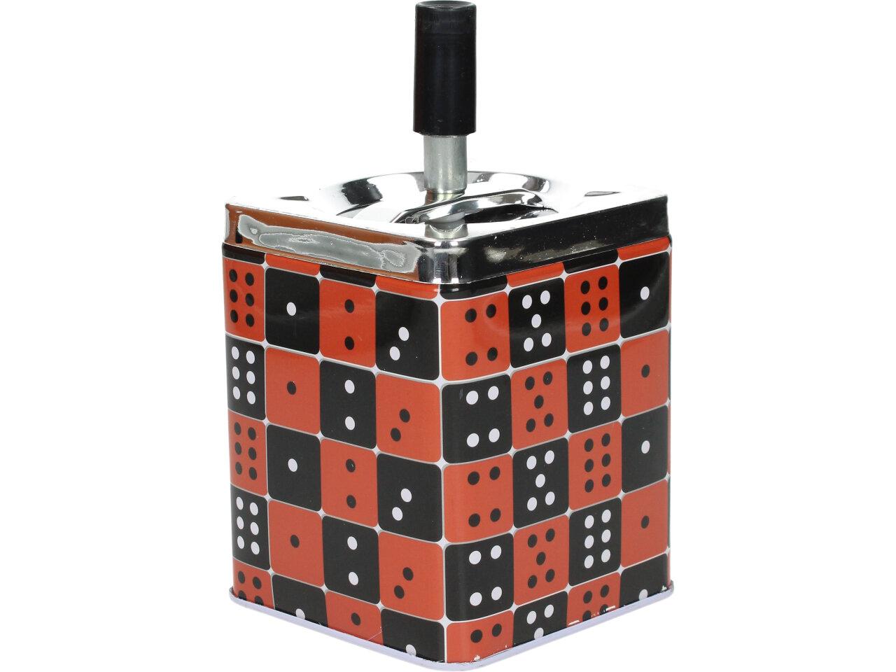 Hranatý popelník se zásobníkem je vyroben z plechu a je opatřen motivem hrací kostky. Popelník se zásobníkem je zajímavým a vtipným designovým prvkem pro interiéry, které mají rády neformální a hravou atmosféru.