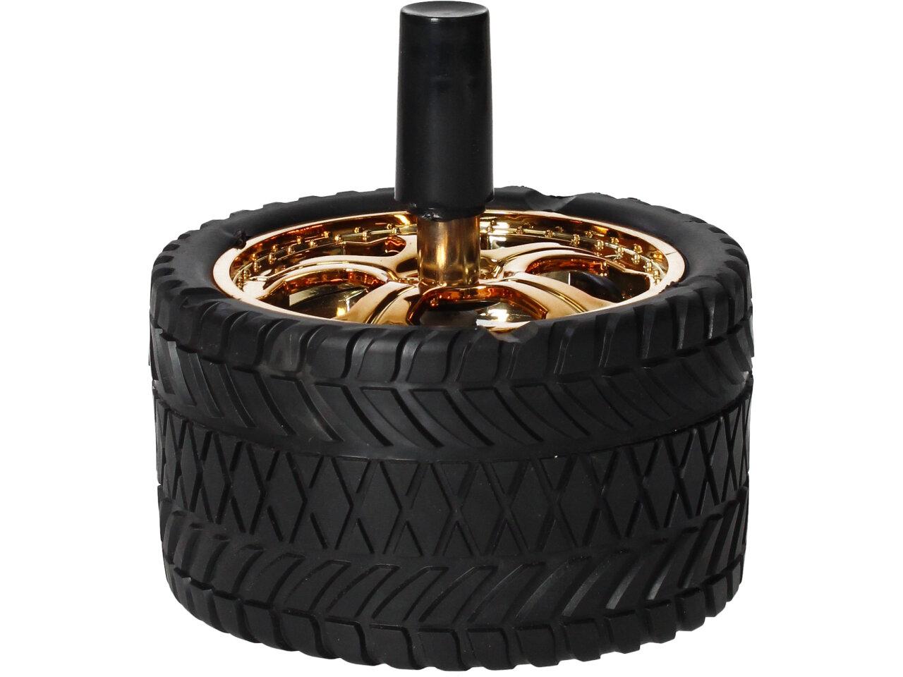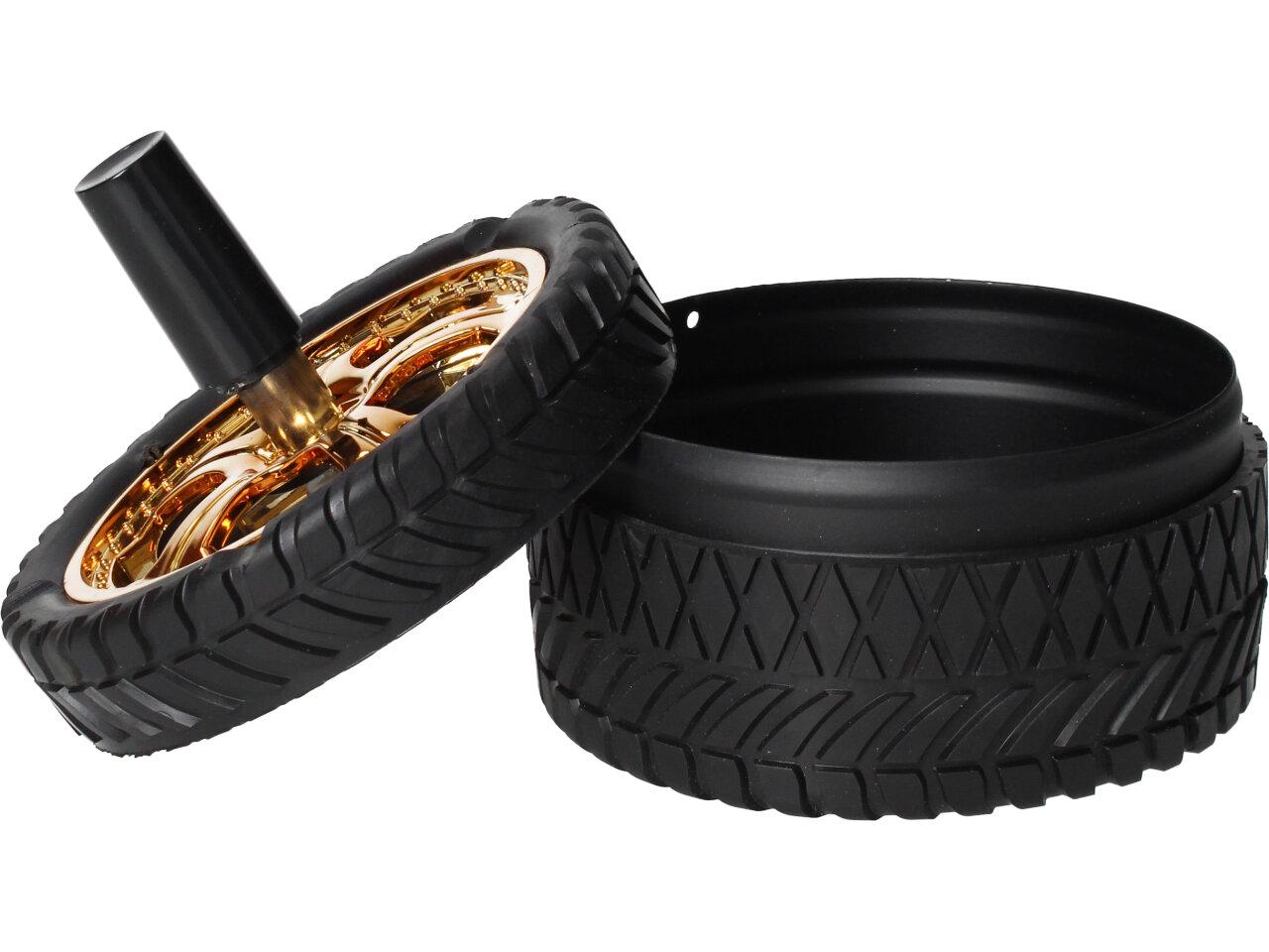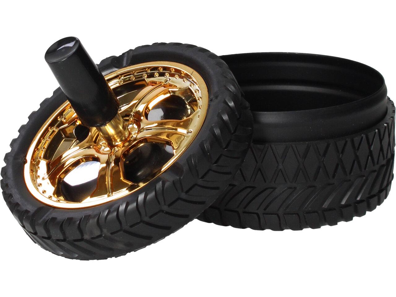 Kulatý popelník se zásobníkem je vyroben odolného plastu a plechu a je ve tvaru pneumatika. Popelník se zásobníkem je zajímavým a vtipným designovým prvkem pro interiéry, které mají rády automo stylolové prostory.