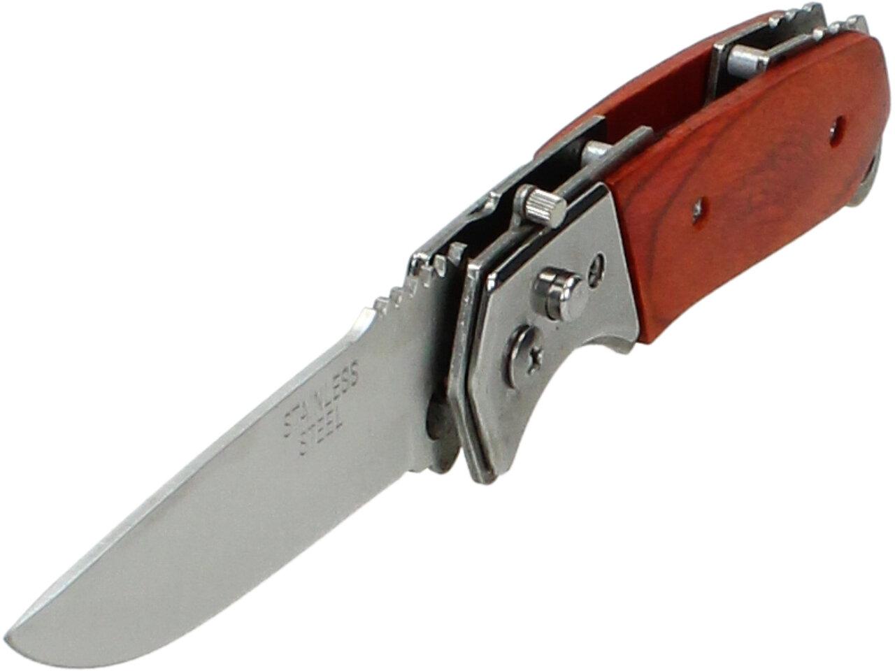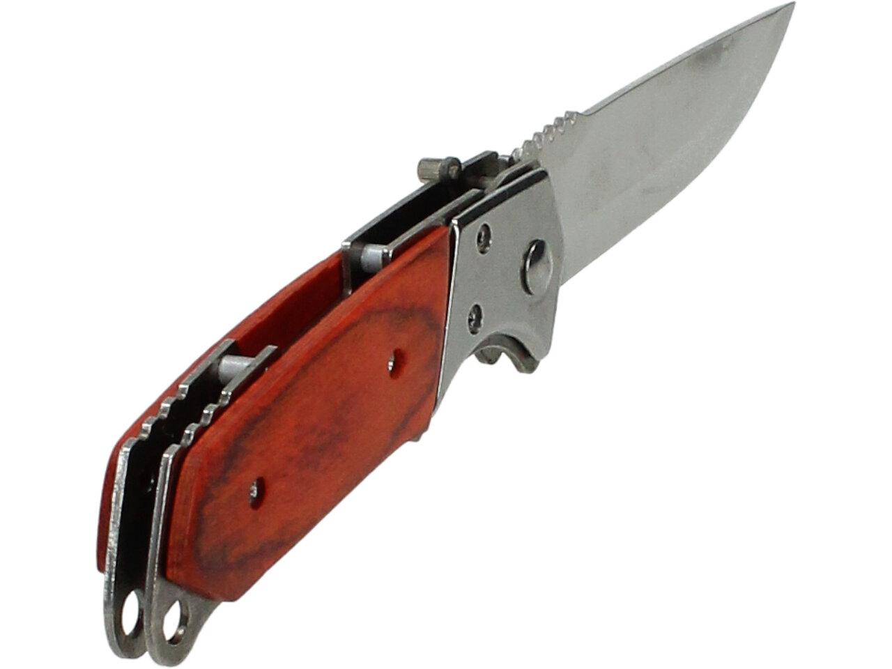 Tento kapesní vystřelovací nůž je ideální pro každodenní použití a je navržen tak, aby splňoval požadavky zákazníků na kvalitu, spolehlivost a bezpečnost. Nůž má dřevěnou střenku a je vyroben z kvalitní nerezové oceli, která poskytuje vysokou odolnost proti korozi a otěru.