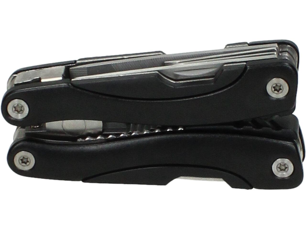 Traveler 14v1 obsahuje nožík, pilku, křížový šroubovák, plochý šroubovák, otvírák na lahve, konzervy a sklenice, kleště, pilník na nehty, kusací kleště, vývrtky, šroubováky a nůžky. Tyto funkce jsou pečlivě navrženy tak, aby byly snadno přístupné a snadno použitelné.