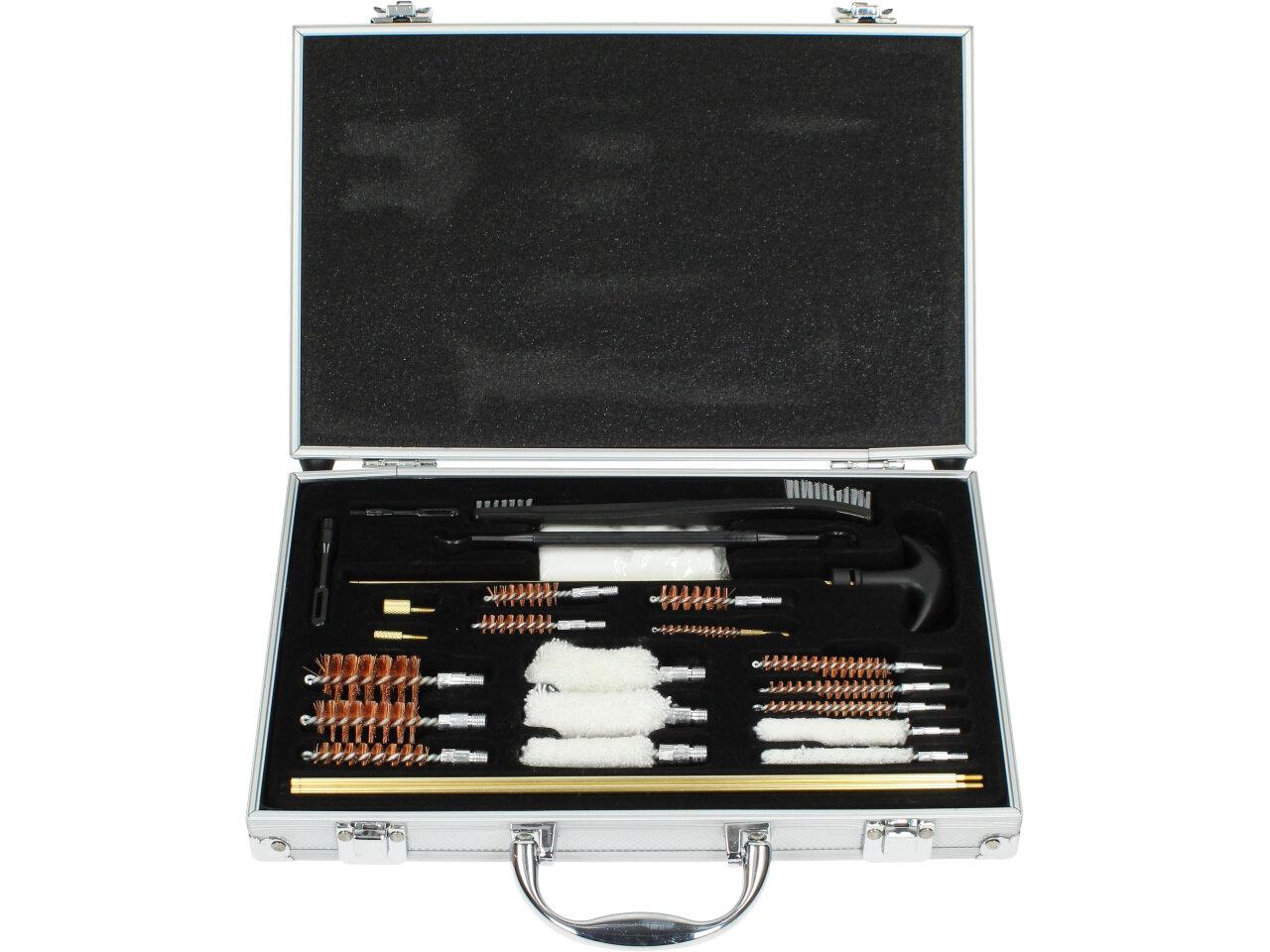 Univerzální čistící sada na zbraně v stříbrném kufru s 24 kusy nástrojů a příslušenstvím je perfektní volbou pro každého majitele zbraně, který se chce postarat o svou zbraň a zajistit její bezproblémový chod. Tato sada obsahuje vše, co potřebujete k čištění a údržbě vaší zbraně, a to vše v elegantním stříbrném kufříku.