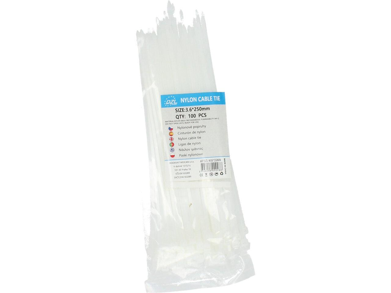 Stahovací pásky 3.6 x 250 mm 100 kusů jsou kvalitní a efektivní nylonové pásky pro stahování kabelů nebo různého materiálu. Velice praktická věc do každé dílny, garáže i domácnosti. Ideální teplota při montáži je min. -10° C, provozní teplota -40° C až 85° C.