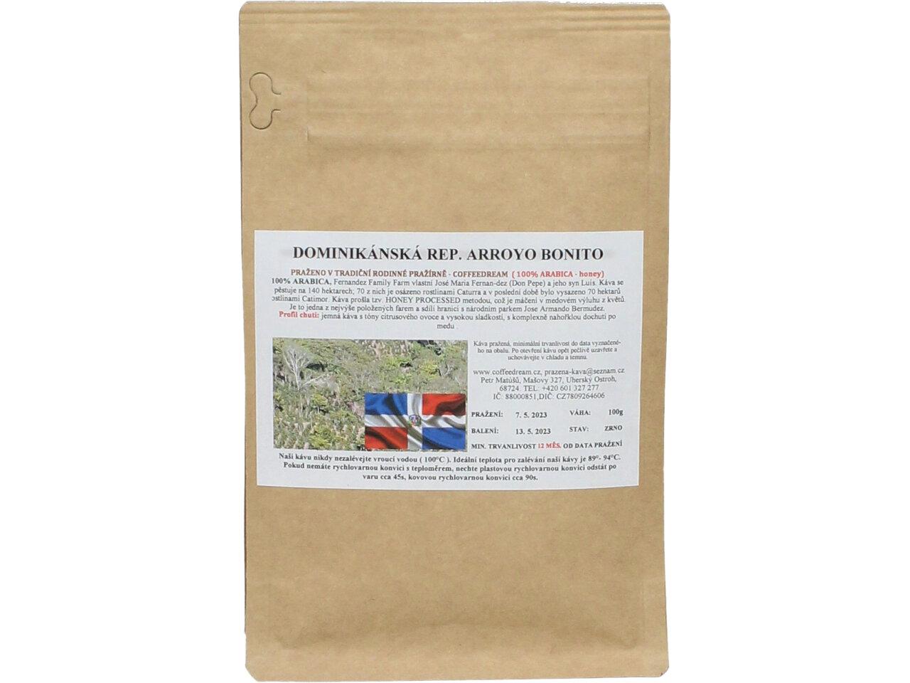 Zrnková káva DOMINIKÁNSKÁ REPUBLIKA ARROYO BONITO - Fernandez Family Farm vlastní pan José Maria Fernan-dez (Don Pepe) a jeho syn Luis. Káva se pěstuje na 140 hektarech; 70 z nich je osázeno rostlinami Caturra a v poslední době bylo vysazeno 70 hektarů kávovníky Catimor. Don Pepe zpracovává kávu a pěstuje s třemi syny - Luis, Enrique a Hipólito. Rodina Fernández zahájila svůj kávový projekt odrůdou Caturra, ale po zamoření Coffee Rust v roce 2015 začali Caturras nahrazovat novou odrůdou Catimor, která je odolnější vůči rezivě. Profil chuti: jemná káva s tóny citrusového ovoce a vysokou sladkostí, s komplexně nahořklou dochutí po medu.