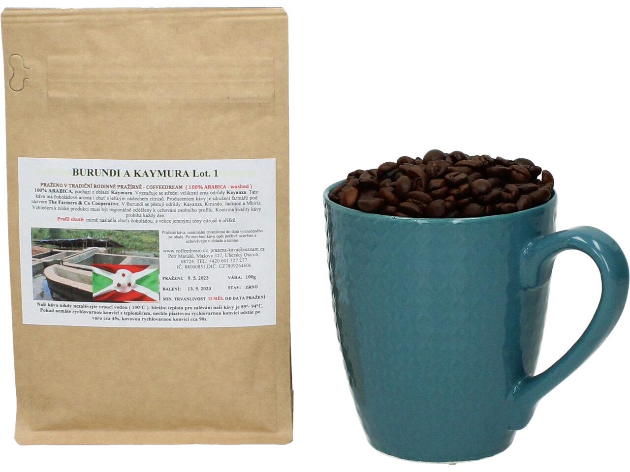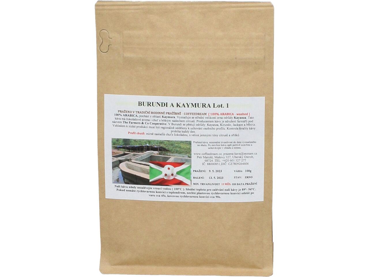Zrnková Káva BURUNDI KAYMURA -pochází z oblasti Kaymura. Vyznačuje se střední velikostí zrna odrůdy Kayanza. Tato káva má čokoládové aroma i chuť s lehkým nádechem citrusů. Producentem kávy je sdružení farmářů pod názvem The Farmers & Co Cooperative. V Burundi se pěstují odrůdy: Kayanza, Kirundo, Jackson a Mbiriz. Vzhledem k nízké produkci musí být regionálně odděleny k uchování osobního profilu. Kontrola kvality kávy probíhá každý den.
