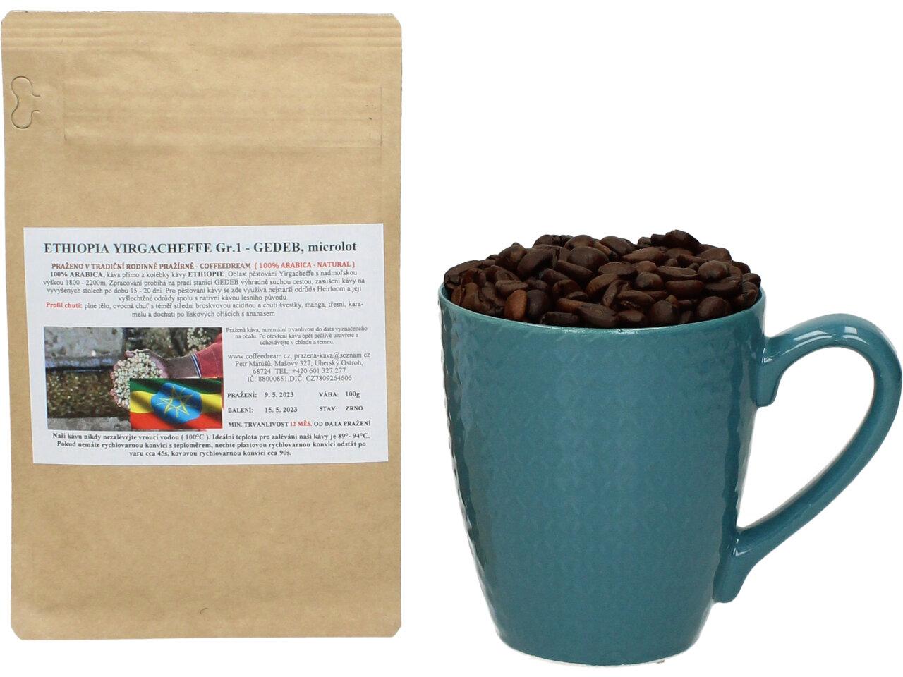 Kvalitní zrnková Káva ETIOPIE YIRGACHEFFE Gr. 2 Profil chuti: pohádkově voňavá s…