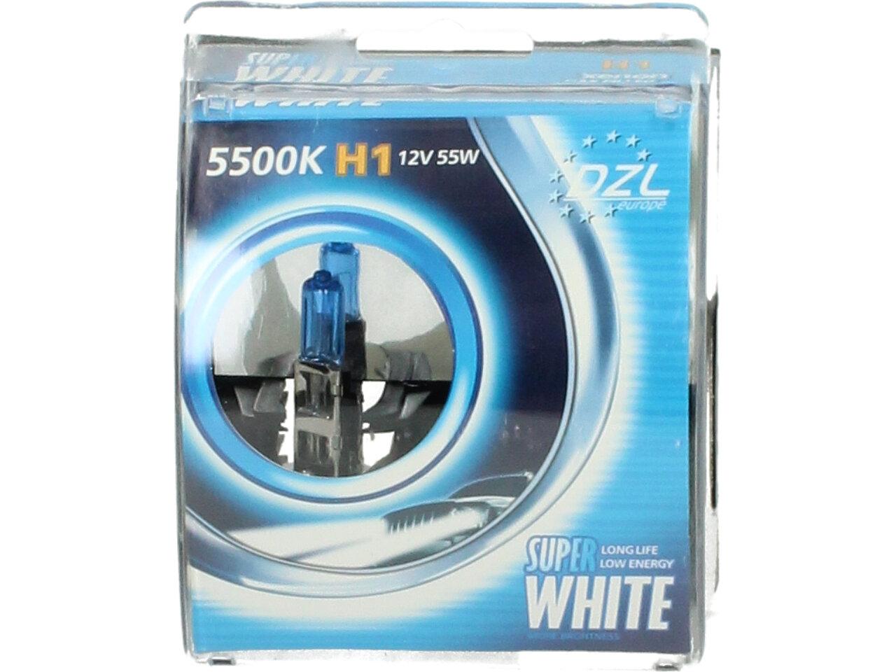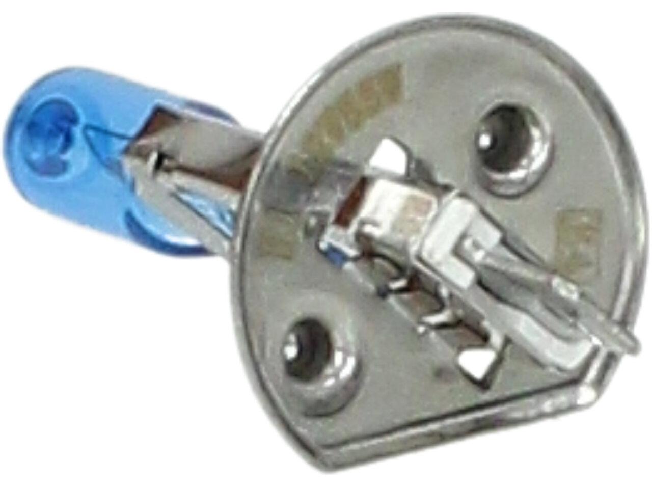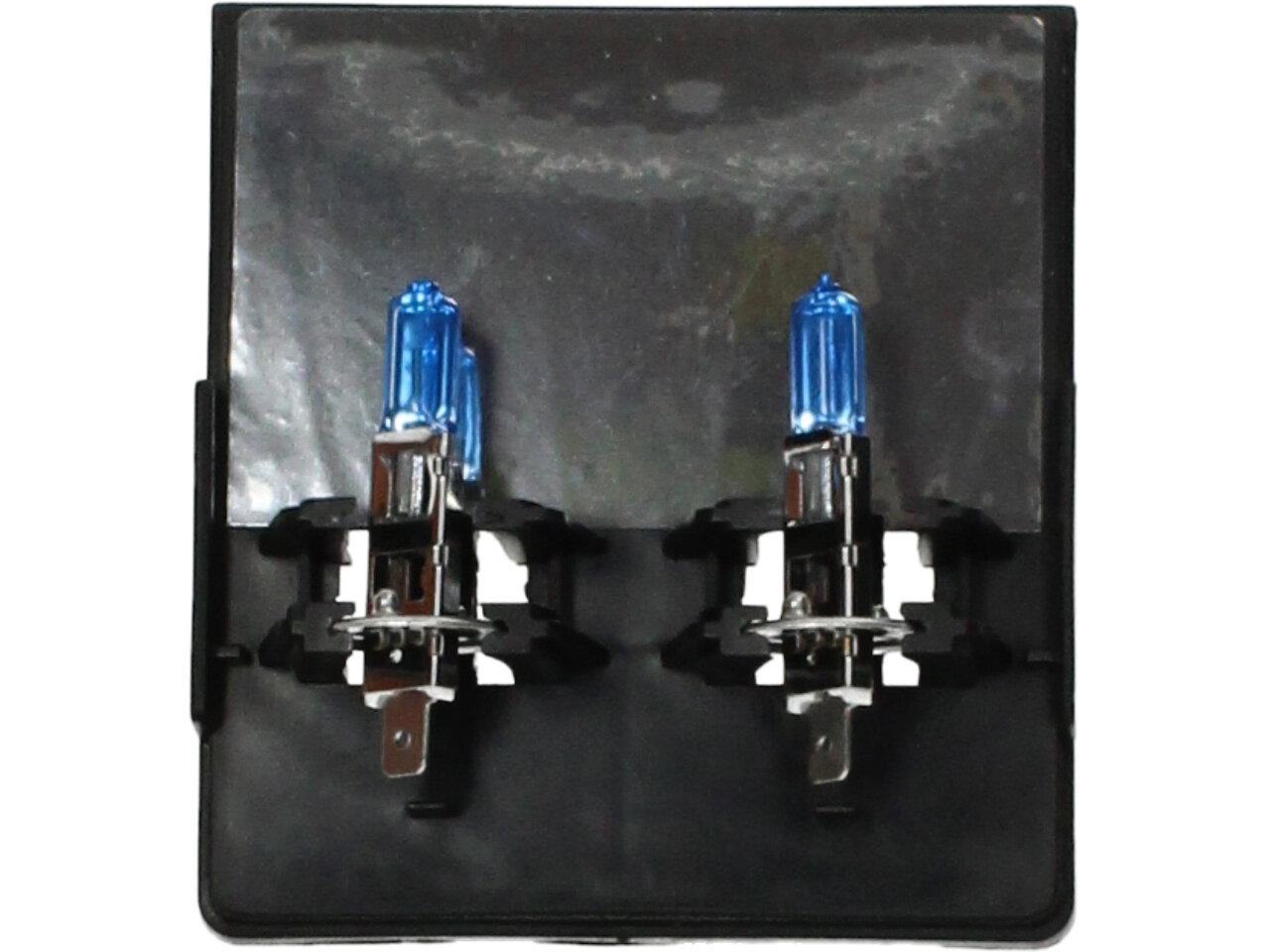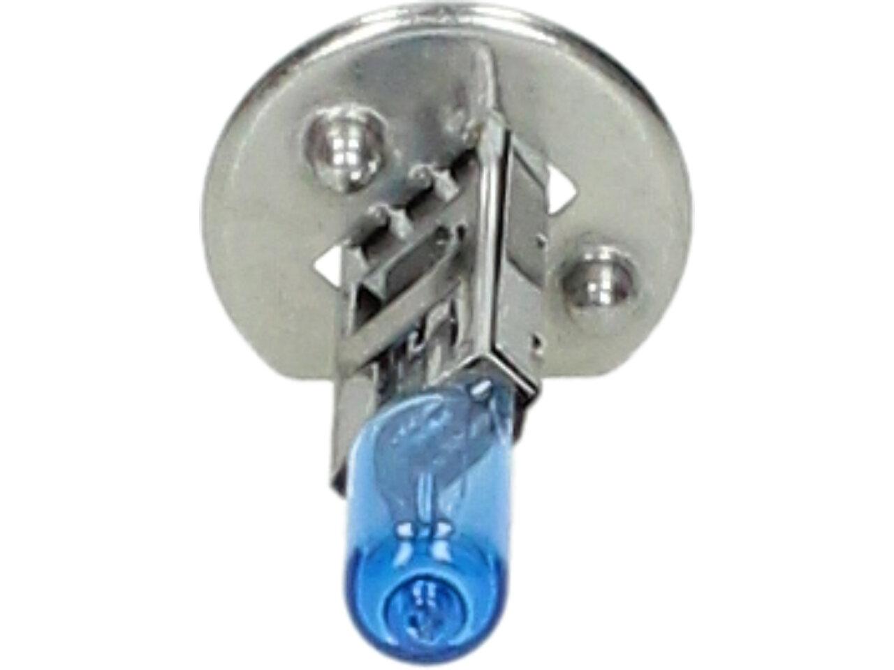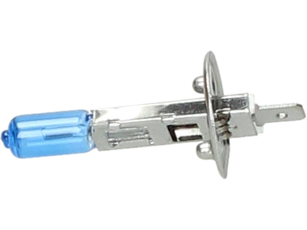 Velice odolná H1 žárovka s barvou světla 5500K (studená bílá) sada 2 kusy do světlometu do auta na 12V jako náhrada za klasickou nevýkonou žárovku H1.