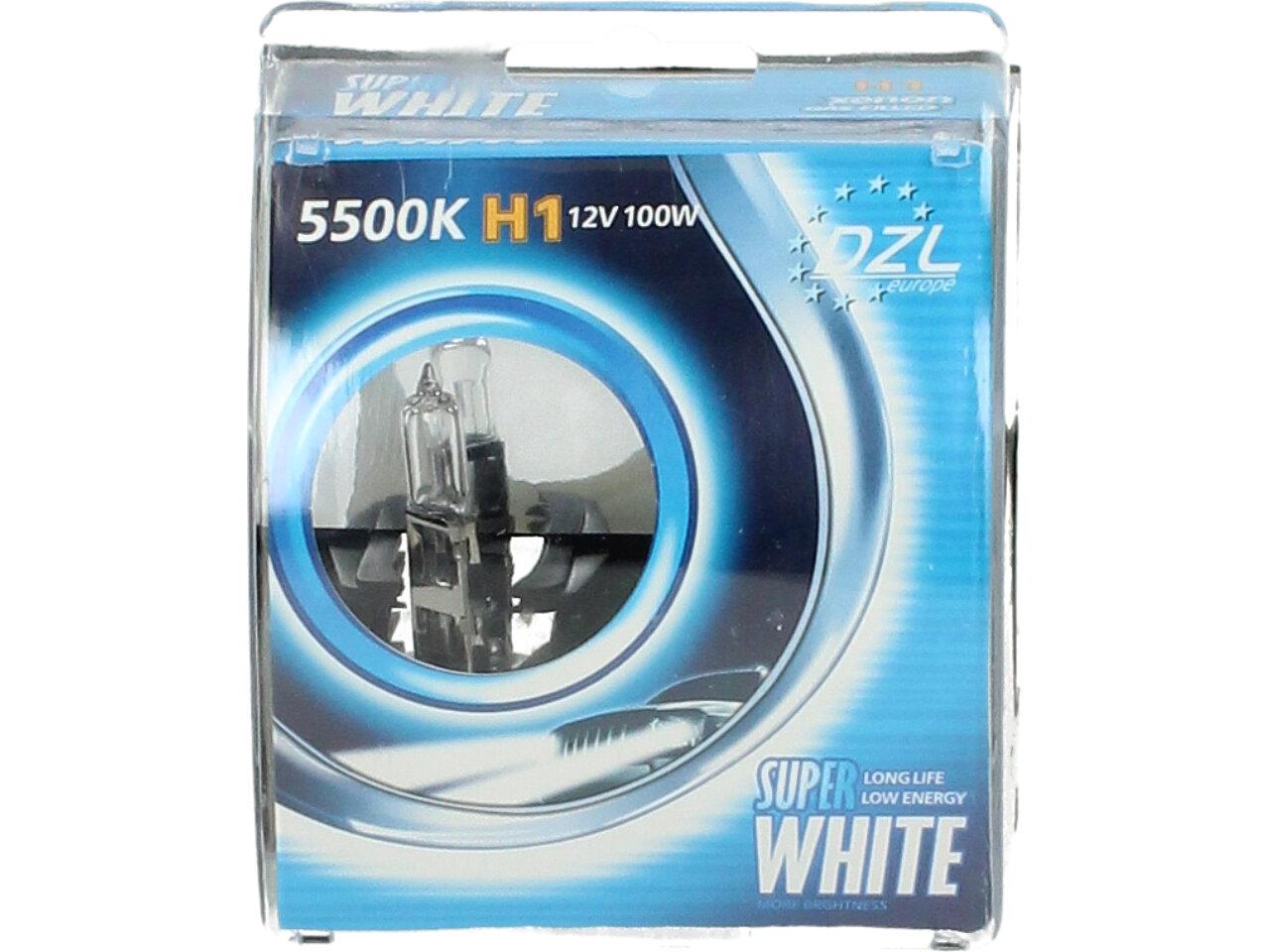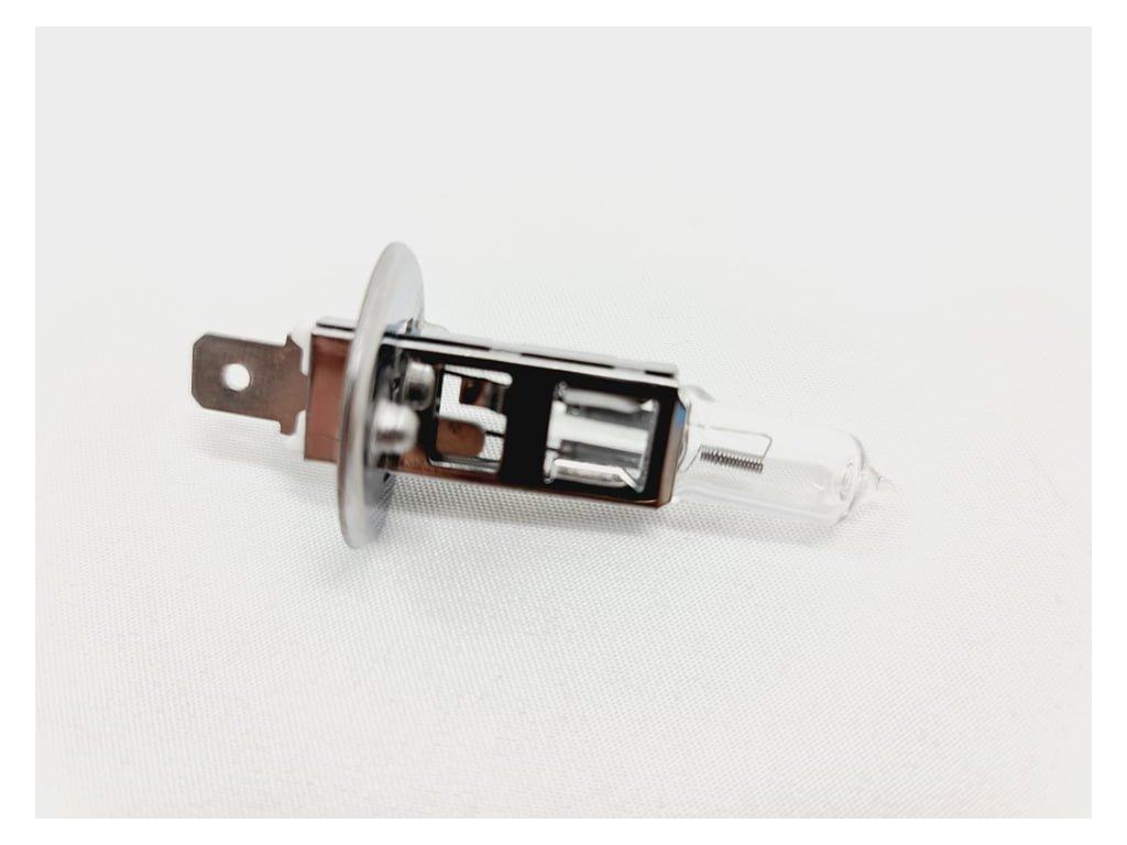 Velice odolná H1 žárovka s barvou světla 5500K (studená bílá) sada 2 kusy do světlometu do auta na 12V jako náhrada za klasickou nevýkonou žárovku H1.