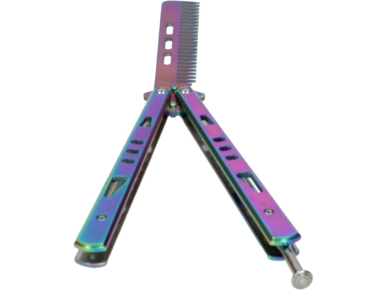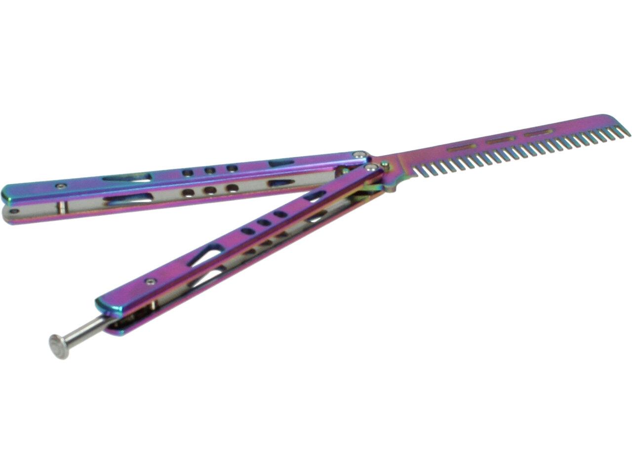 Tréninkový nůž motýlek - hřeben je ideální pro začátečníky při úpravě vousů a vlasů. Má délku 23 cm. Vyroben z nerezové oceli, díky které je odolný vůči poškození. Tento produkt je navržen jako motýlí nůž, ale s praktickým hřebenem jako hlavou namísto čepele nože. Motýlí hřeben lze použít jako tradiční hřeben do vlasů, ale také jako cvičný nůž, pokud se chcete naučit dělat různé triky. Ideální pro trénink vaší obratnosti! Výrobek funguje také jako dokonalá stresová hračka. Vyrobeno z oceli.