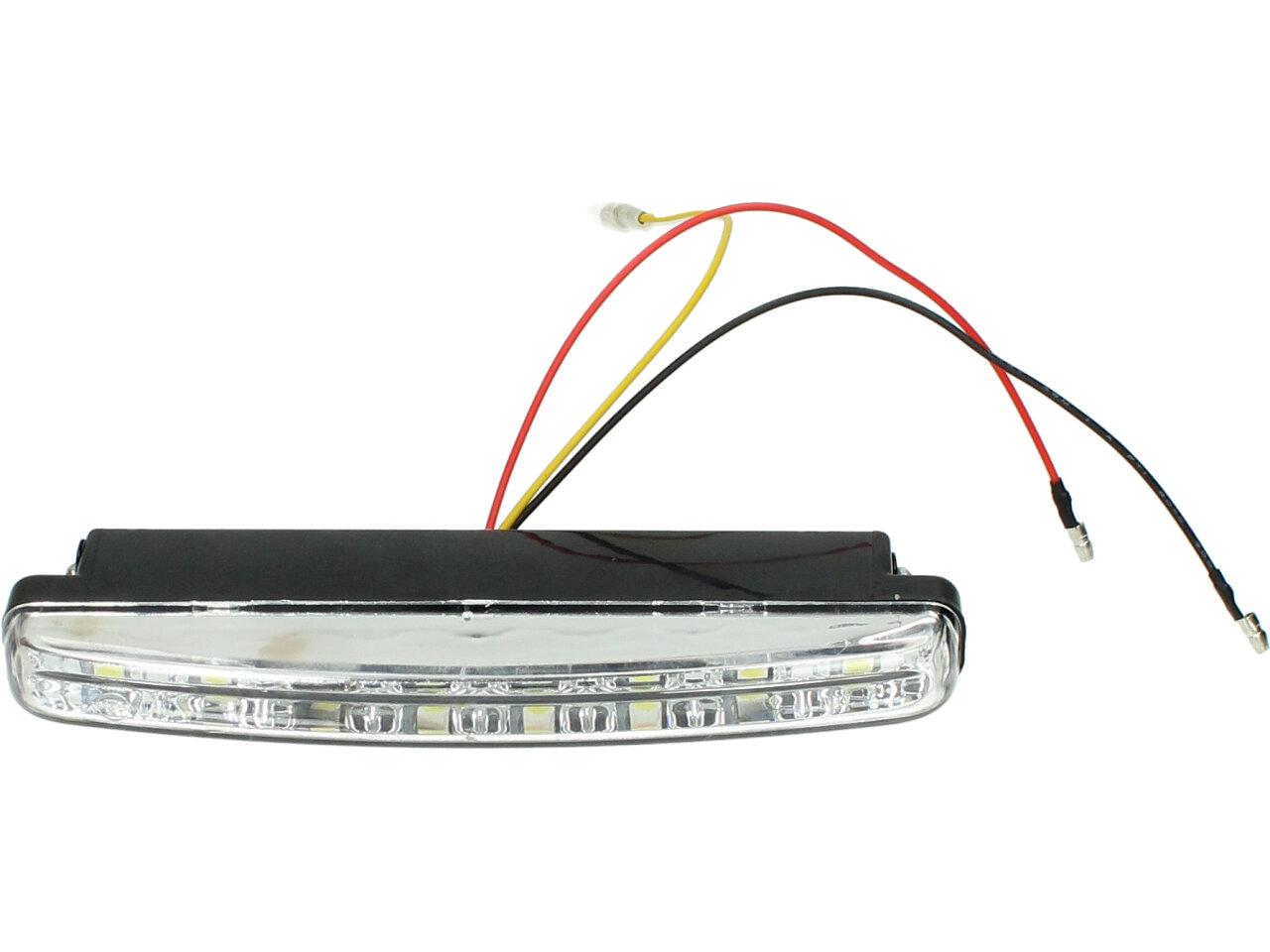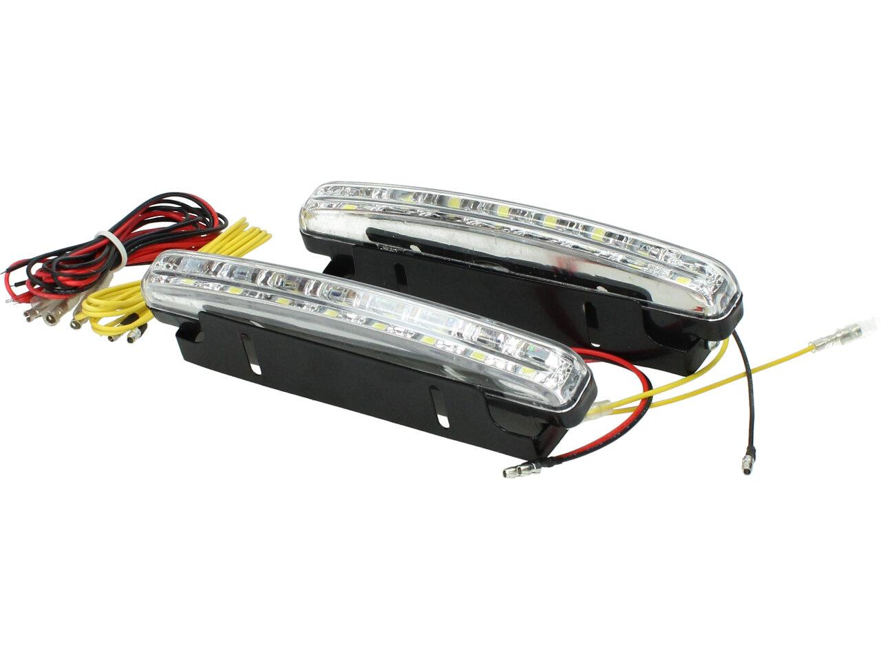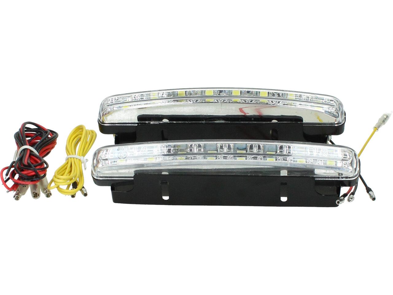vysoce kvalitní sada (2 kusy) 8 světel Super LED světla pro denní svícení (DRL), univerzální pro všechny nejnovější SUV nebo nákladní automobily atd. Světla pro denní svícení (DRL) jsou z ultra tenké konstrukce, která se běžně instaluje za masku chladiče, pod motorový prostor nebo pod nárazník. Tato světla pro denní svícení jsou dodávána s chromovými pouzdry a 8ks čistě bílých LED diod s vysokým jasem na každé straně. Mohou být použity jako denní světla, parkovací světla, mlhová světla nebo dokonce signální světla. Tyto LED by výrazně zvýšily viditelnost vašeho vozu během dne i noci a zvýšily bezpečnost jízdy. Bylo by to také vzhled vašeho vozu na luxusnější vzhledvodotěsný pro všechny silniční podmínky, ultra tenký a lehký design s nastavitelným kovovým držákem pro univerzální uchycení, zlepšení celkového vzhledu s extra chladným bílým paprskem (6000K ~ 7000K) s moderním stylem. Extrémně dlouhá životnost a nízká spotřeba.