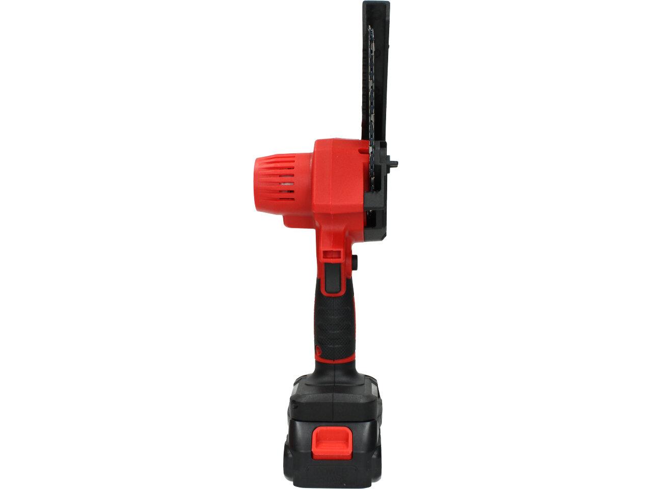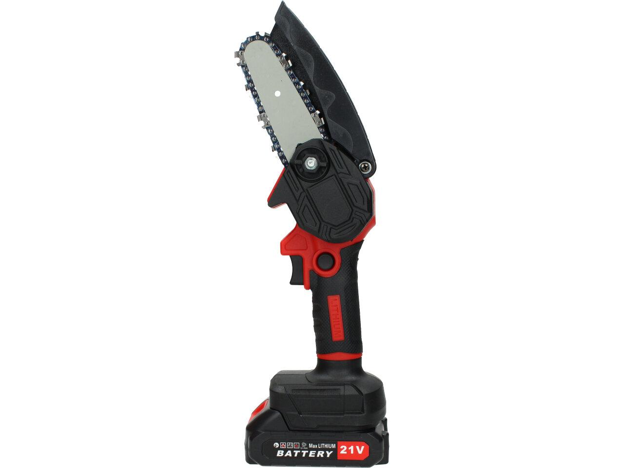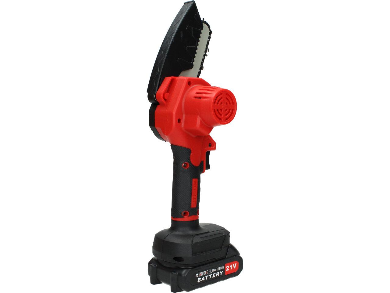 Elektrická ruční pila je vhodná pro zahradnictví a proto by neměla chybět v žádné kůlně. Snadno s ní prořezáte keře, tůje, odříznete větev a mnoho dalšího. Je zde přidané také tlačítko bezpečnostního zámku, které zabrání nechtěnému spuštění. Tato pila se vyznačuje vysokou tvrdostí řetězu a nízkou hmotností, díky které ji můžete používat pouze jednou rukou. Měděný motor zajistí silný výkon a nižší spotřebu energie, to následně zvyšuje efektivitu Vaší práce. Ergonomicky tvarovaná rukojeť poskytne pohodlné a pevné uchopení. Můžete si také nastavit i rychlost řezání, klasickým stlačováním spíneče. Spolu s pilou obdržíte v balení 1x Li-ionovou baterii 21V.
