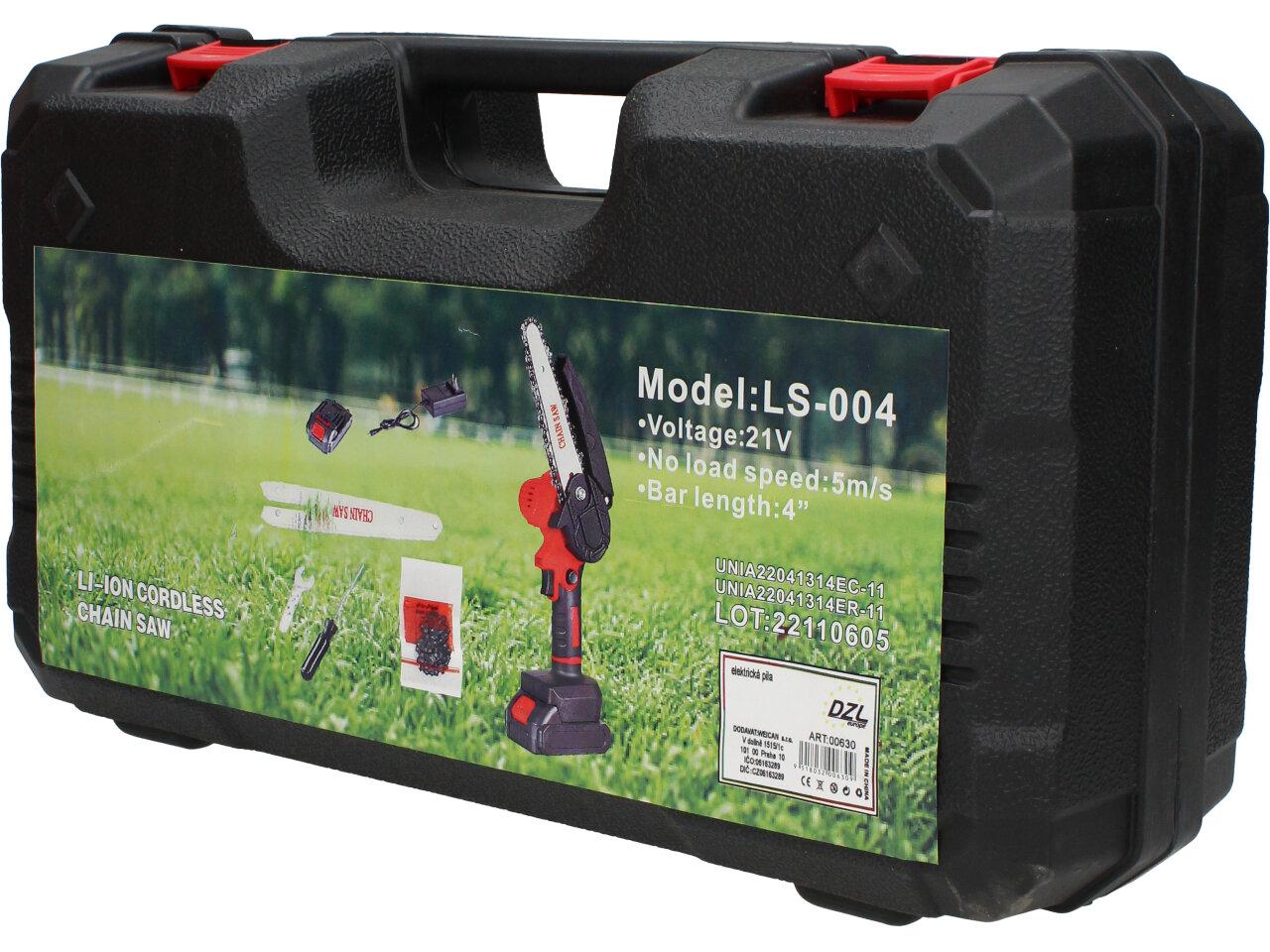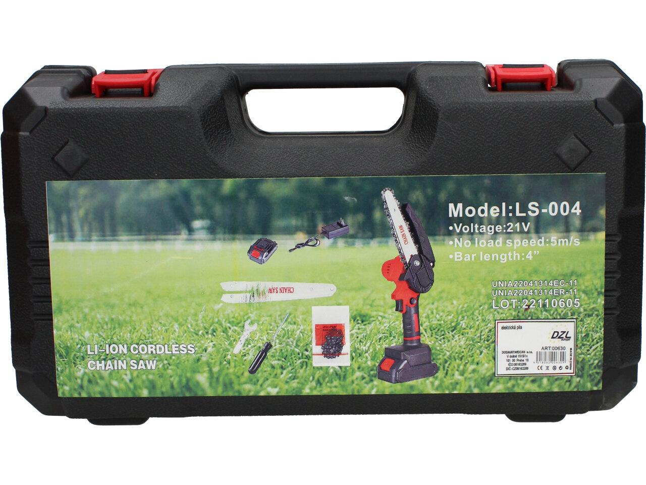 - Obsah balení: pila, 1x výkonná baterie 2 000 mAh, nabíječka, řetěz, šroubovák