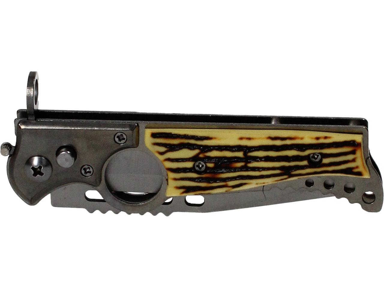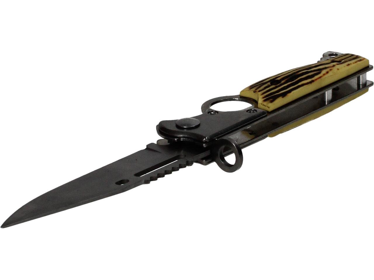 Vystřelovací nůž kapesní s dřevěnou střenkou 21 cm s pouzdrem - disponuje silným…