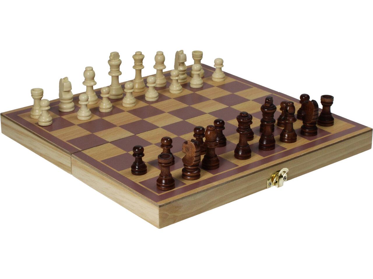 Kdo by neznal hru šachy? Tuto logickou hru hrají lidé po celém světě. V praktické krabičce můžete mít své šachy stále u sebe. Jedete na dovolenou či na šachový turnaj? Sbalte své figurky a můžete vyrazit. Šachy jsou vyrobeny z kvalitního dřeva. Zahrajte si i vy hru králů kdykoliv a kdekoliv vás napadne. Strategická hra Šachy je vhodná pro hráče od 6 let