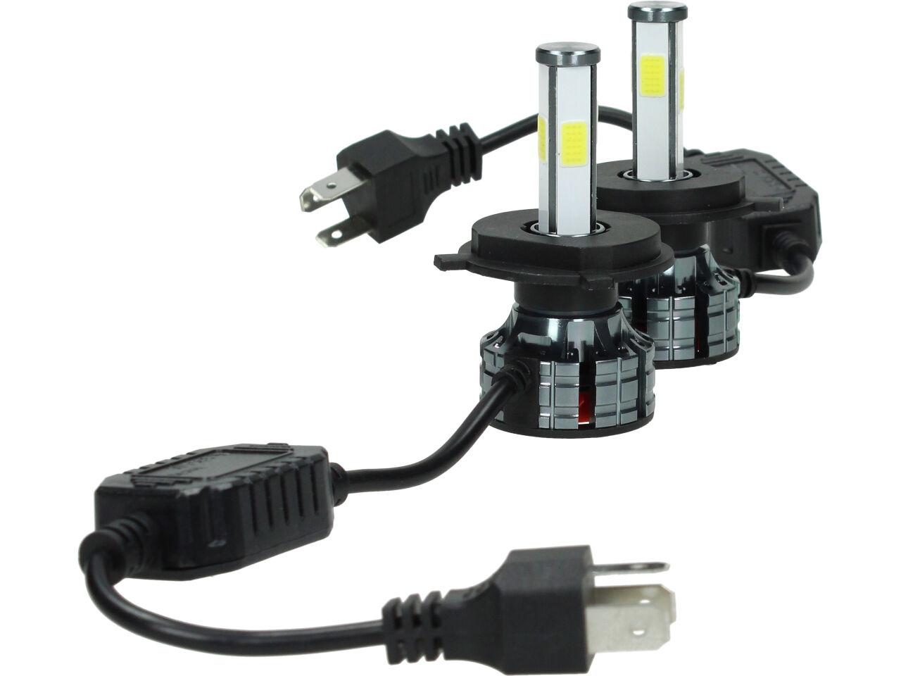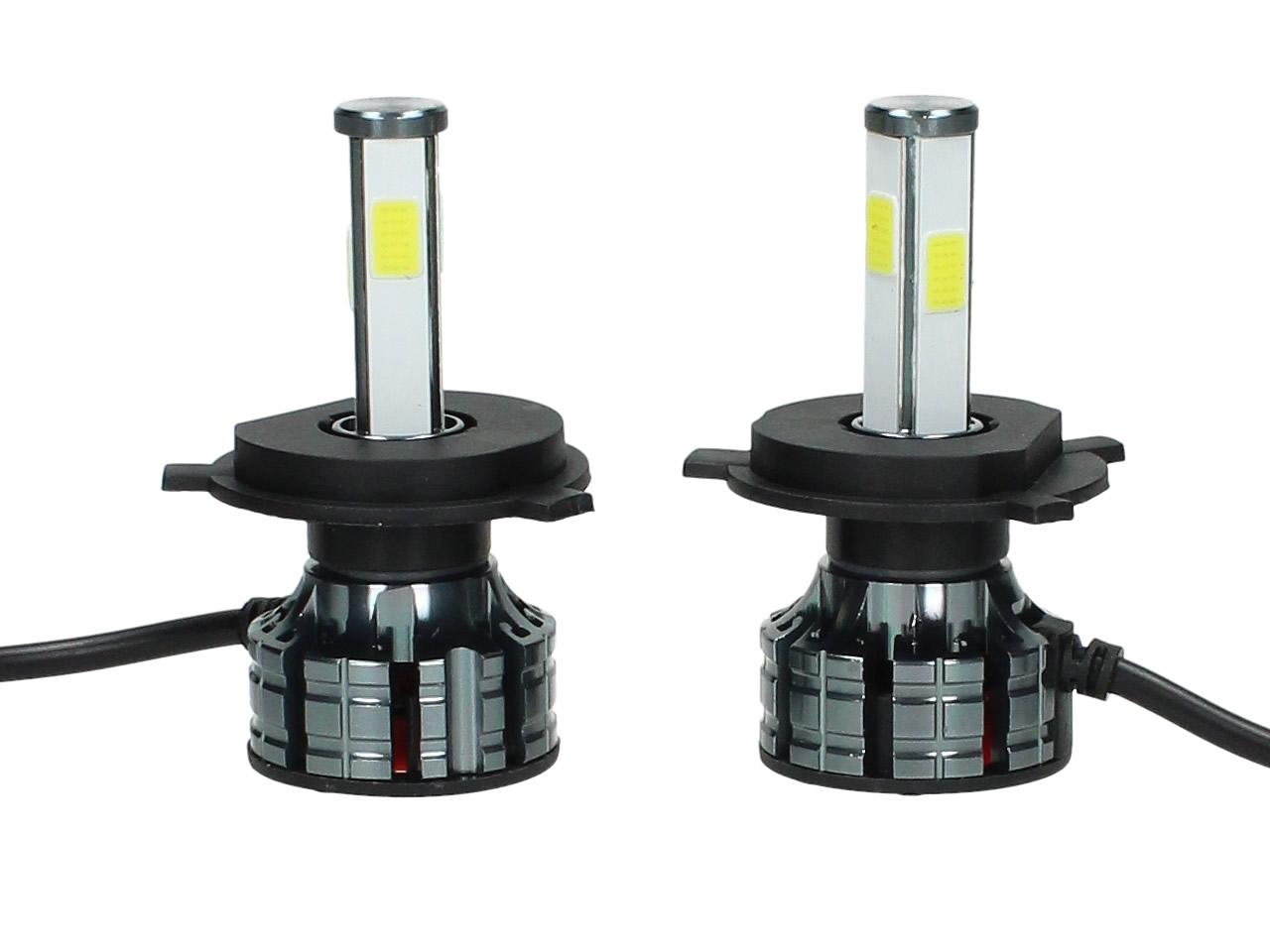 Velice odolná LED H4 model K4S žárovka s barvou světla 6000K (studená bílá) sada 2 kusy do světlometu do auta na 12V, 24V jako náhrada za klasickou nevýkonou žárovku H4.
