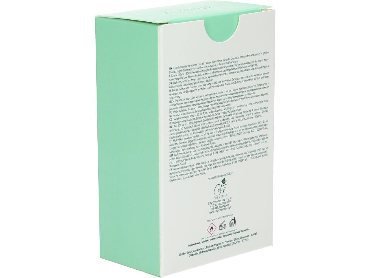 Osvěžující a povzbuzující vůně s akordy zeleného čaje. Zelený čaj dodává energii a povznáší tělo, podráždí Vaše smysly a povzbudí ducha. Je svěží, enegrický a citrusový - už se cítíme lépe! Green Tea je ideální pro všechny ženy, co mají rády lehké, svěží vůně.