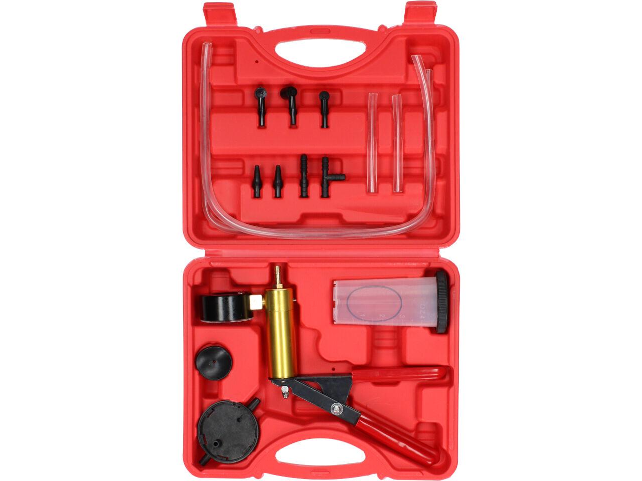 Podtlaková pistole s manometrem včetně různých téček, hadiček a nástavců pro univerzální použití a vše zabaleno v plastovém kufříku. Vytváří podtlak až do -1 BAR. Slouží ke kontrole systémů automobilů, jejichž činnost je založena na podtlaku. Sada umožňuje diagnostikovat všechny naftové a benzínové spalovací motory prakticky v každém motoru nebo systému. Celé to umožňuje začít pracovat okamžitě, bez dokupování dalšího příslušenství. Kontrola správné funkce brzd, tlakových čidel a mnoha dalších věcí přispívá k bezpečnosti cestujících, ale i osoby, která vůz řídí.