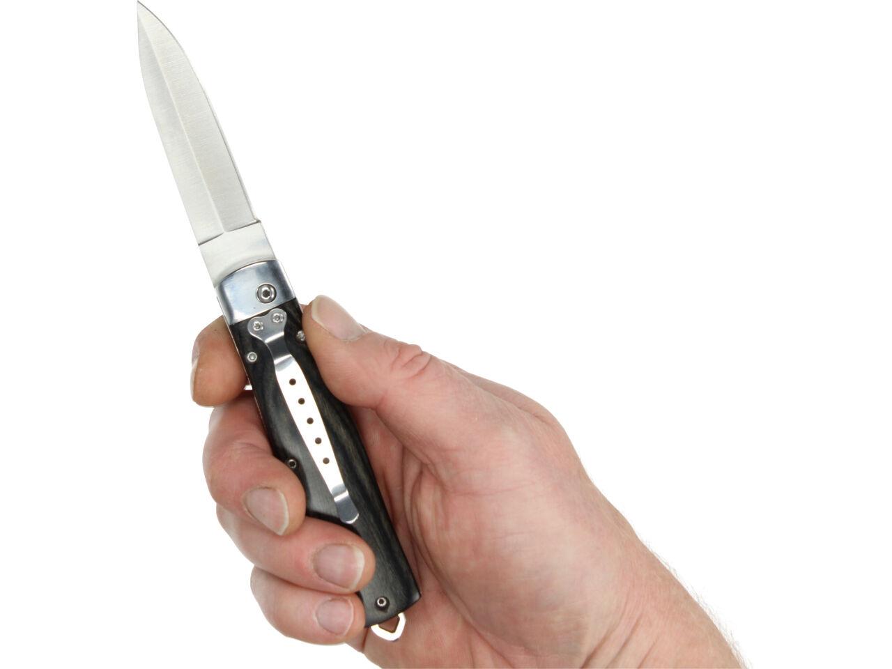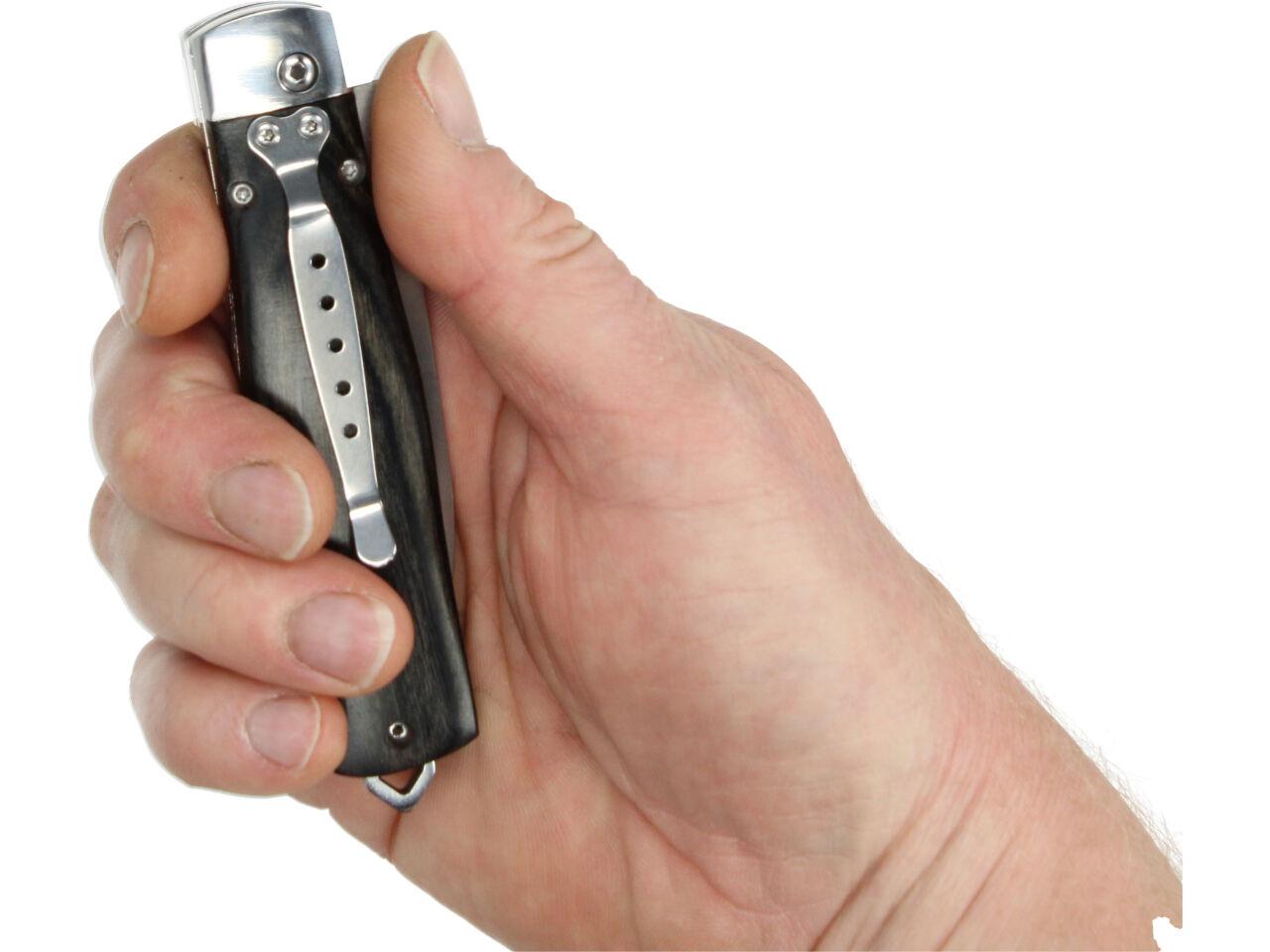 Vystřelovací nůž kapesní s dřevěnou střenkou 21 cm s pouzdrem - disponuje silným…