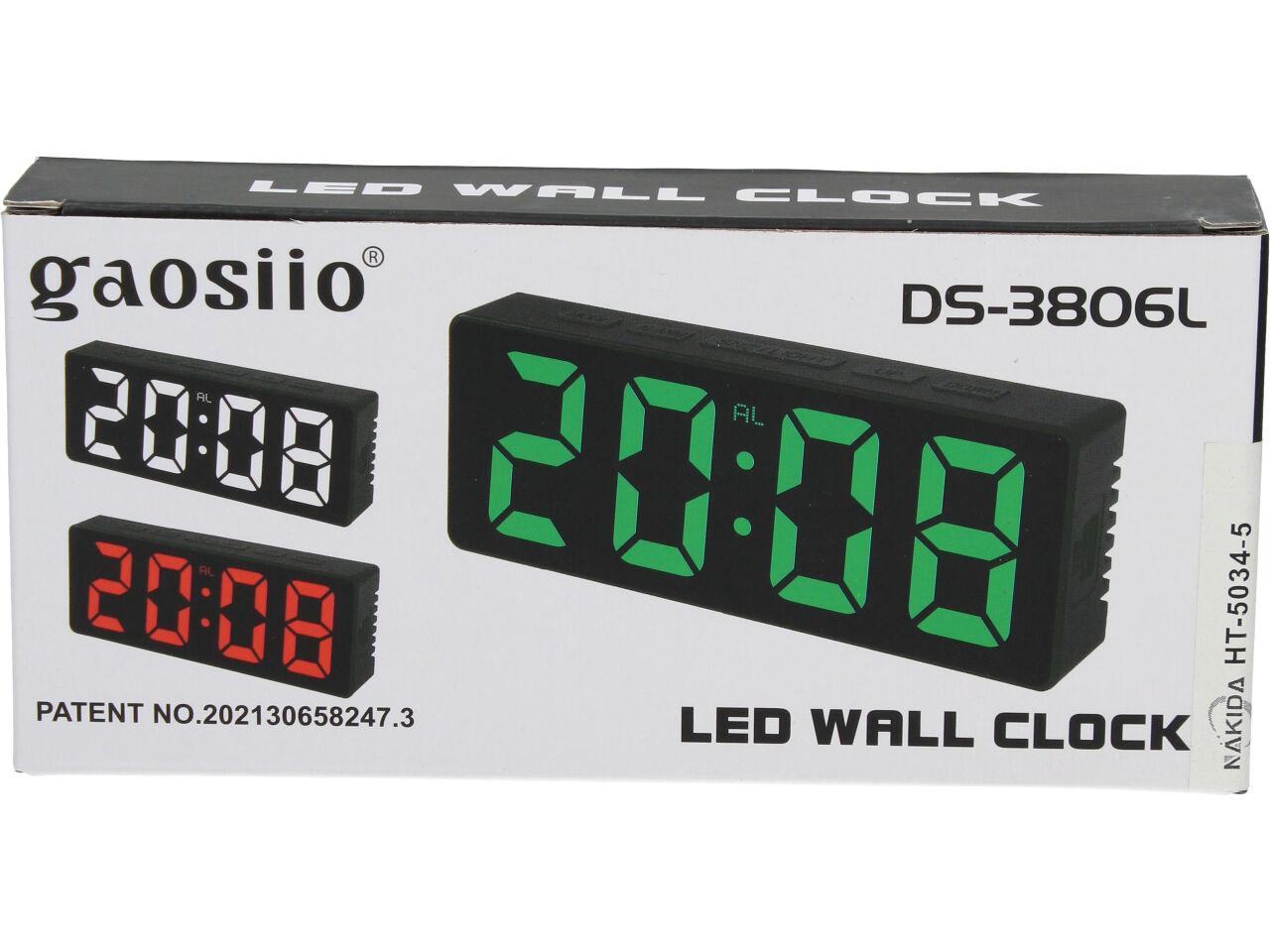 Led Digitální Hodiny Gaosiio DS-3806L je stolní budík moderního vzhledu, bílý, červený a zelený displej, napájení z bat 3x AAA a z USB