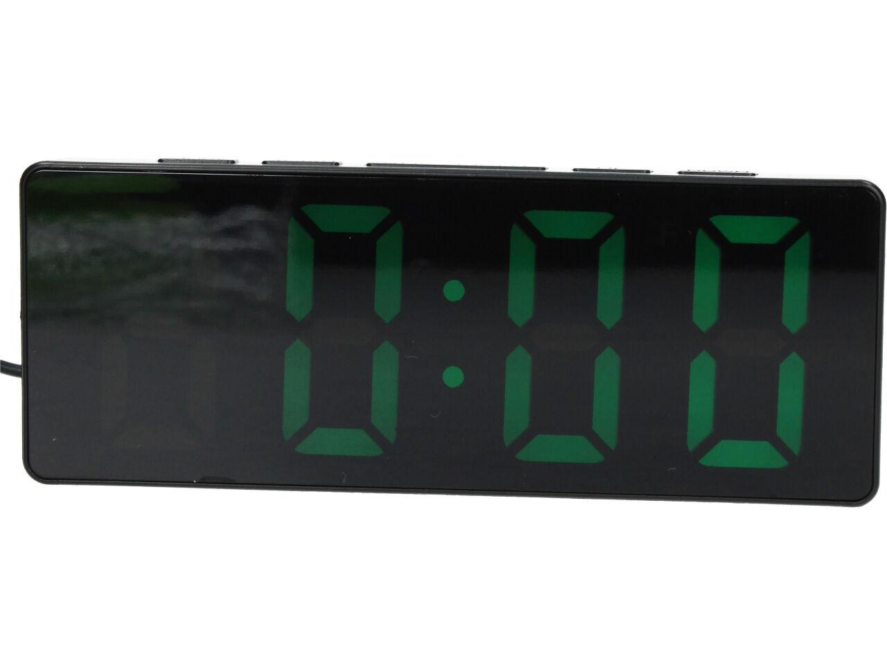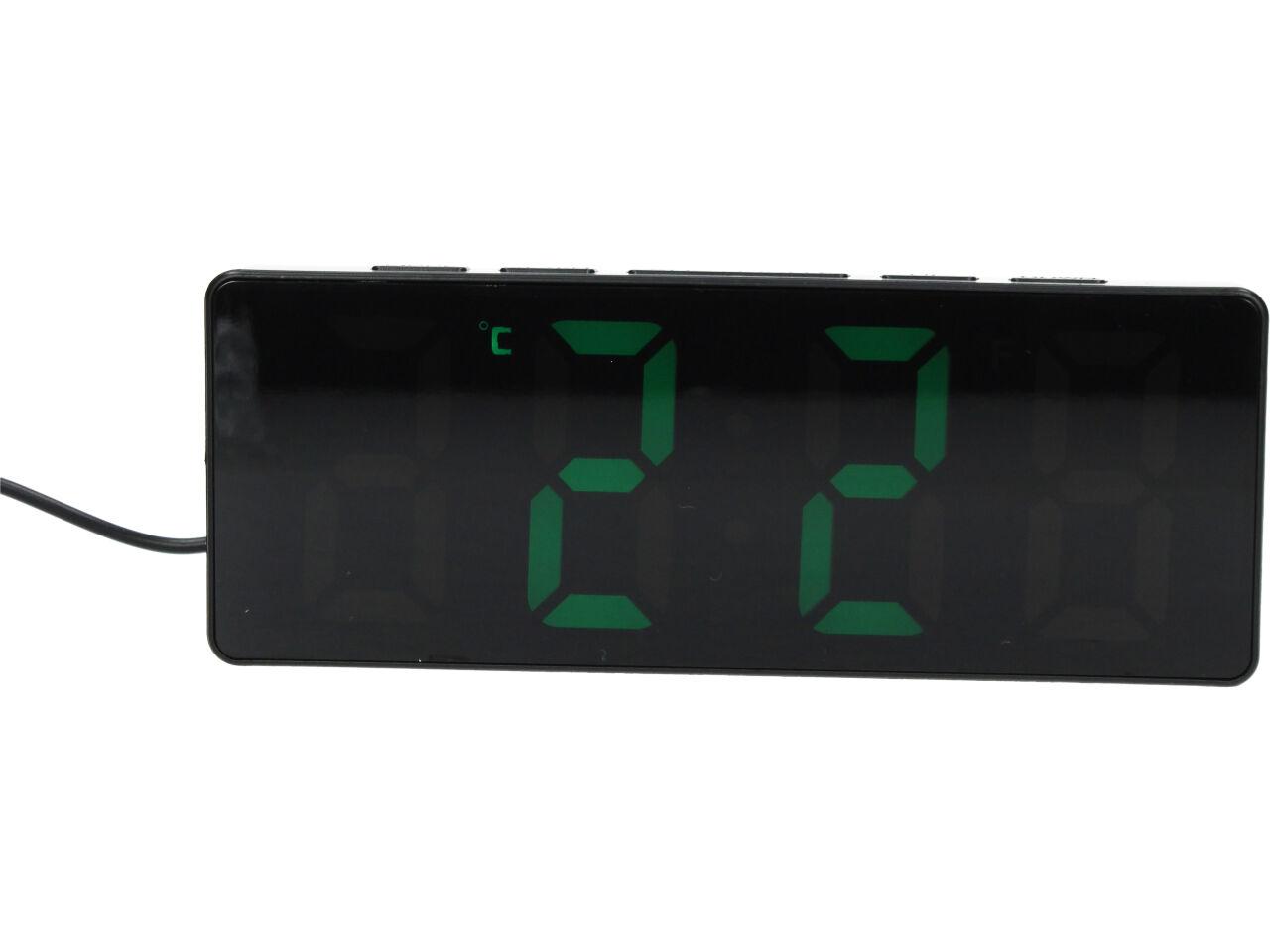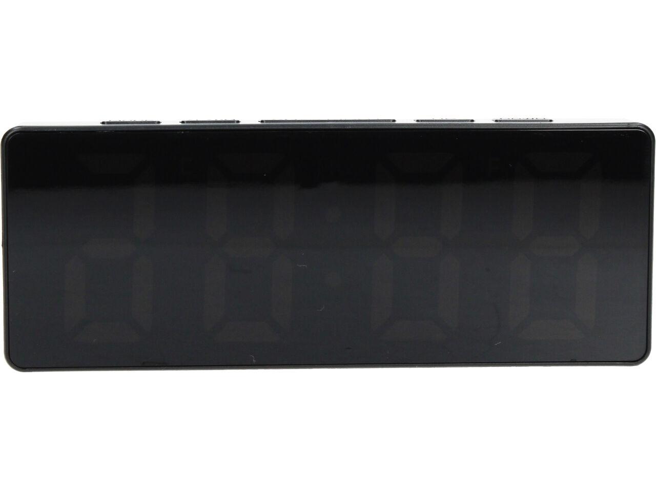 Digitální hodiny se zrcadlovým LED displejem, který zobrazí čas, datum a teplotu v místnosti. Všechny tyto údaje se pozvolna střídají, takže nemusíte nikde nic přepínat pro zobrazení teploty, nebo času.