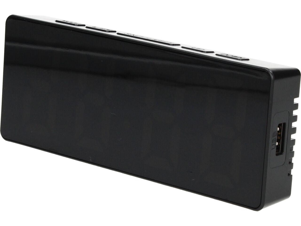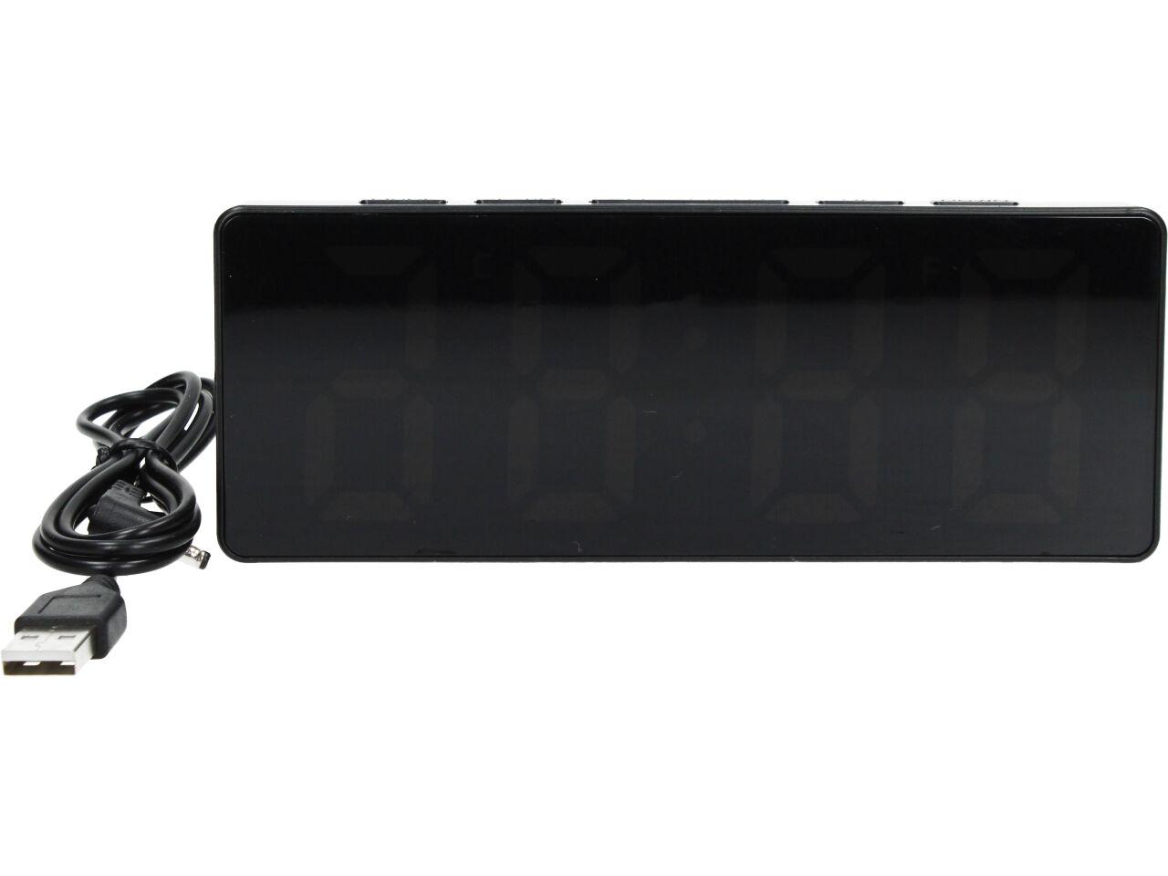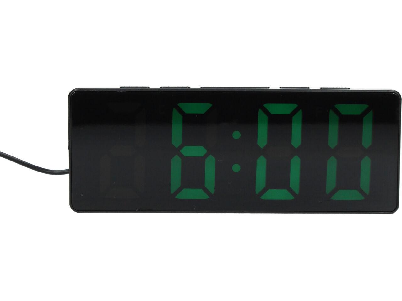 Digitální hodiny se zrcadlovým LED displejem, který zobrazí čas, datum a teplotu v místnosti. Všechny tyto údaje se pozvolna střídají, takže nemusíte nikde nic přepínat pro zobrazení teploty, nebo času.
