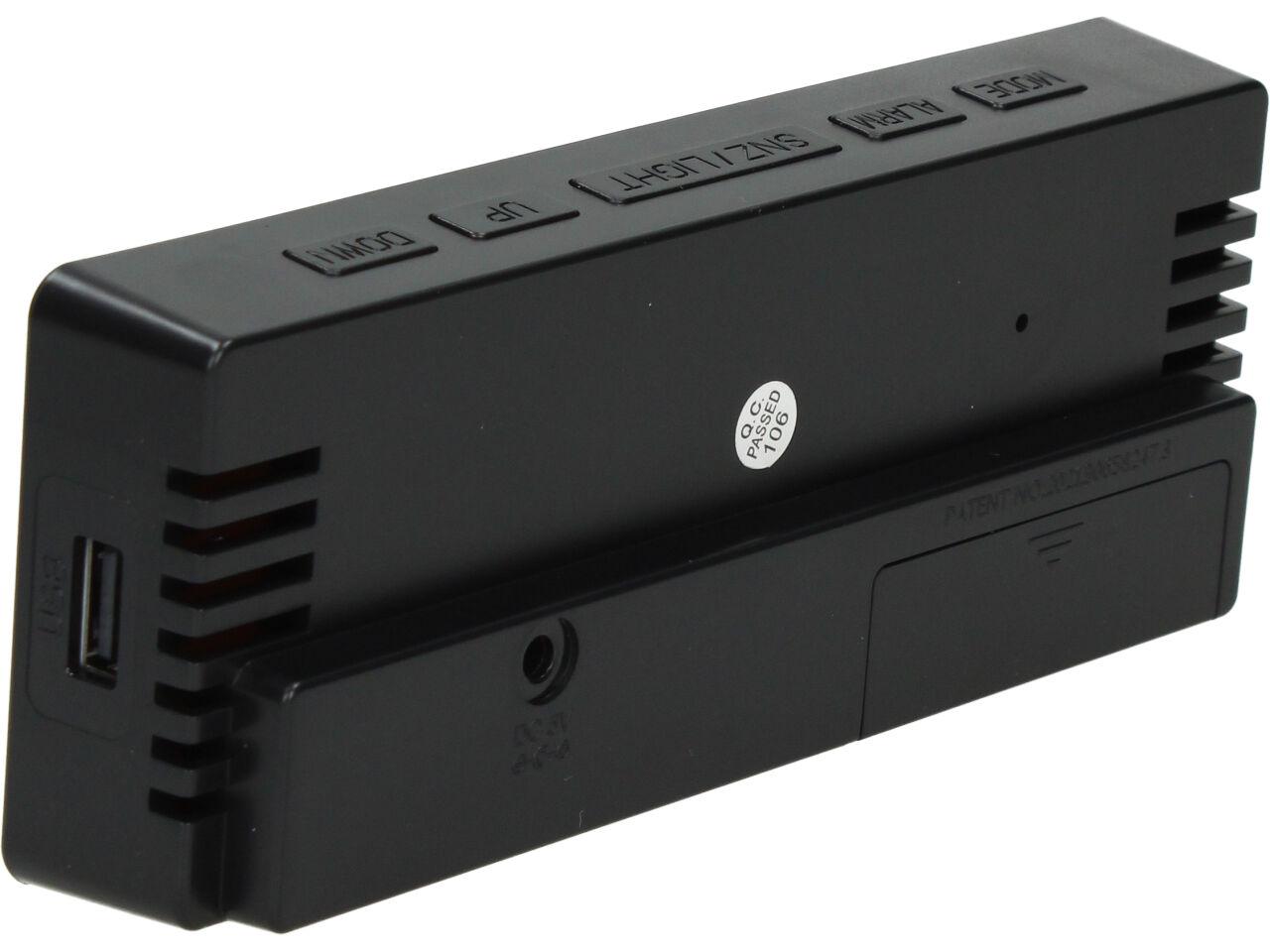 Tento multifunkční stolní budík má zabudovaný teploměr a automaticky nastavitelný jas dle aktuálního času.