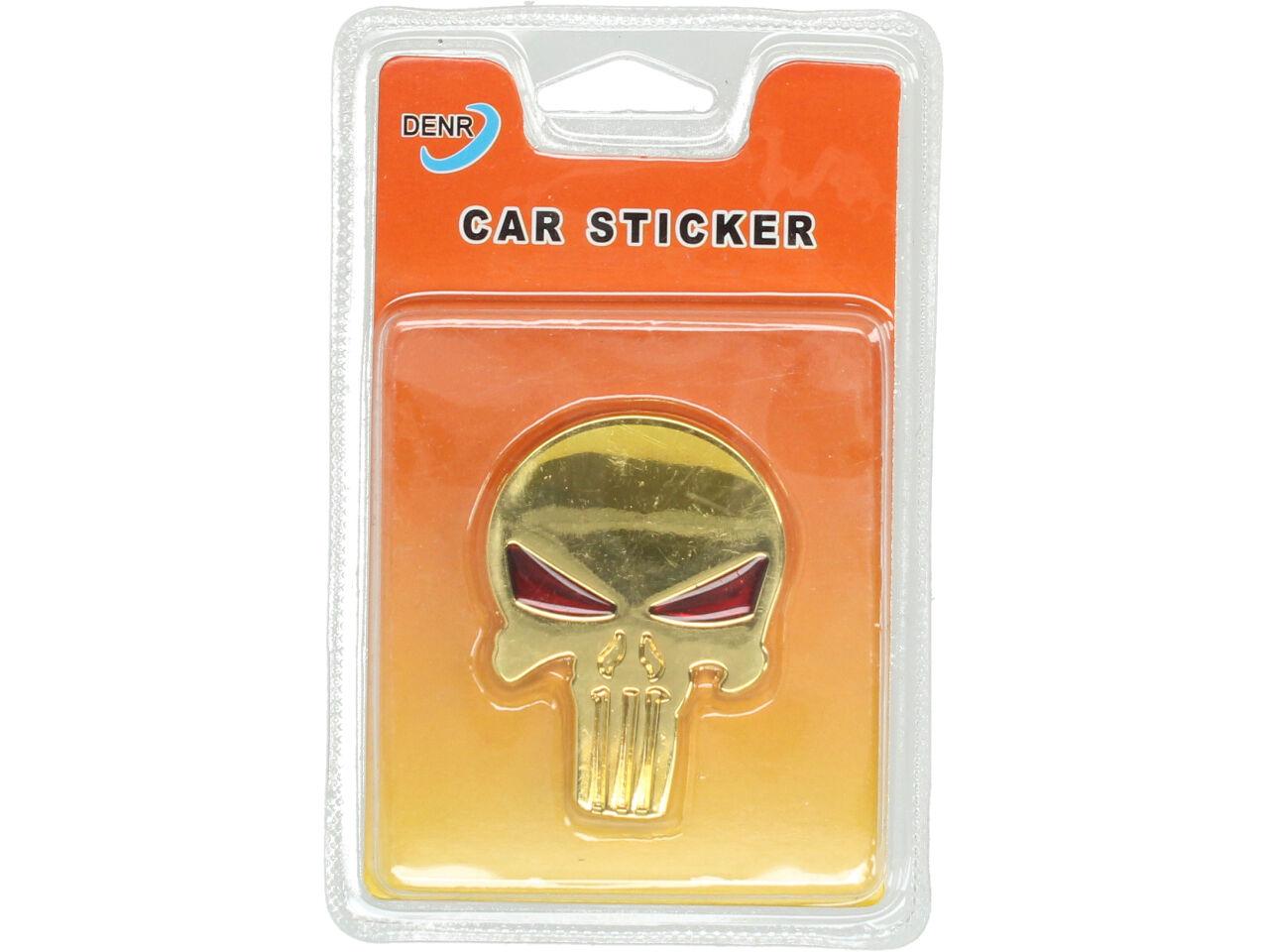 Kovová samolepka Zlatá lebka s očima 4cmx6cm zaručeně udělá radost všem tuningářům, majitelům a milovníkům aut. Kvalitní kovová nálepka je opatřena oboustranoou lepící páskou a neničí povrch laku na autě. Samolepka je voděodolná. Využít lze na jakékoliv libovolné povrchy i předměty.