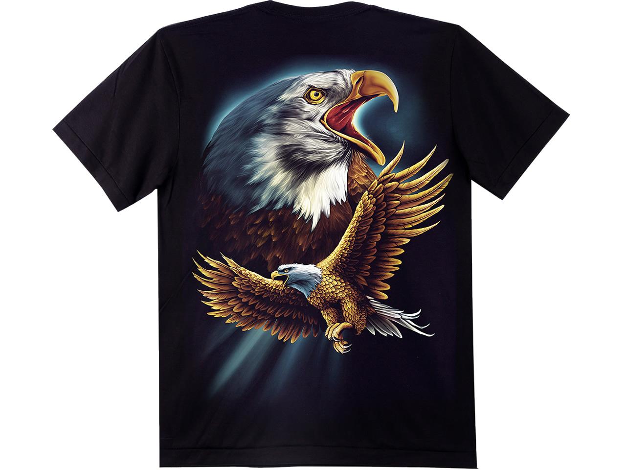 Trička Rock Eagle znamená kvalitní černé tričko s výrazným a dlouho trvajícím potiskem potiskem a nápadným motivem triček, jsou vyrobeny ze 100% bavlny s propracovaným šitím.