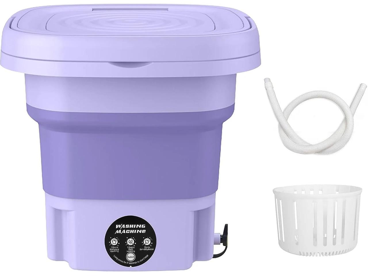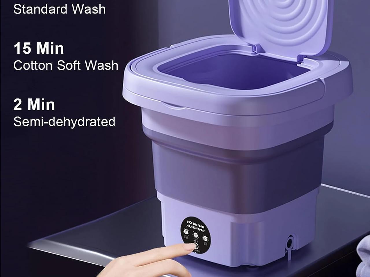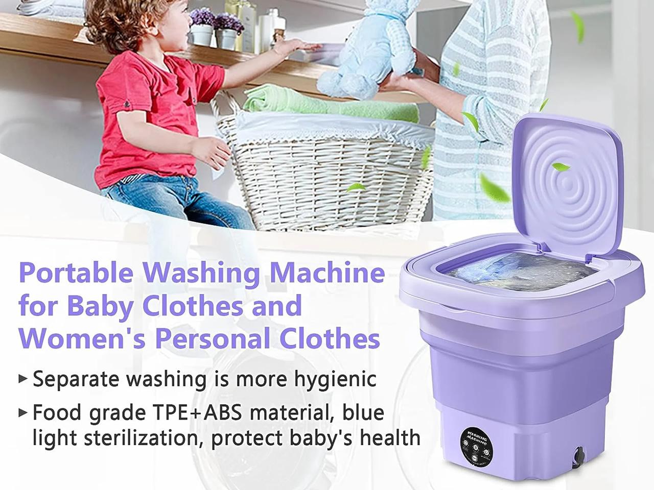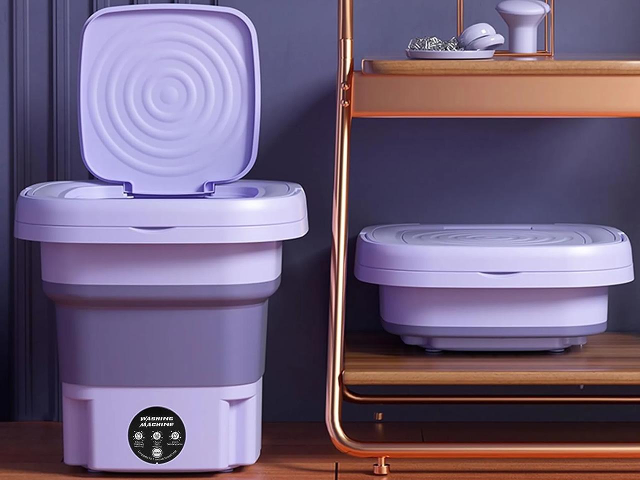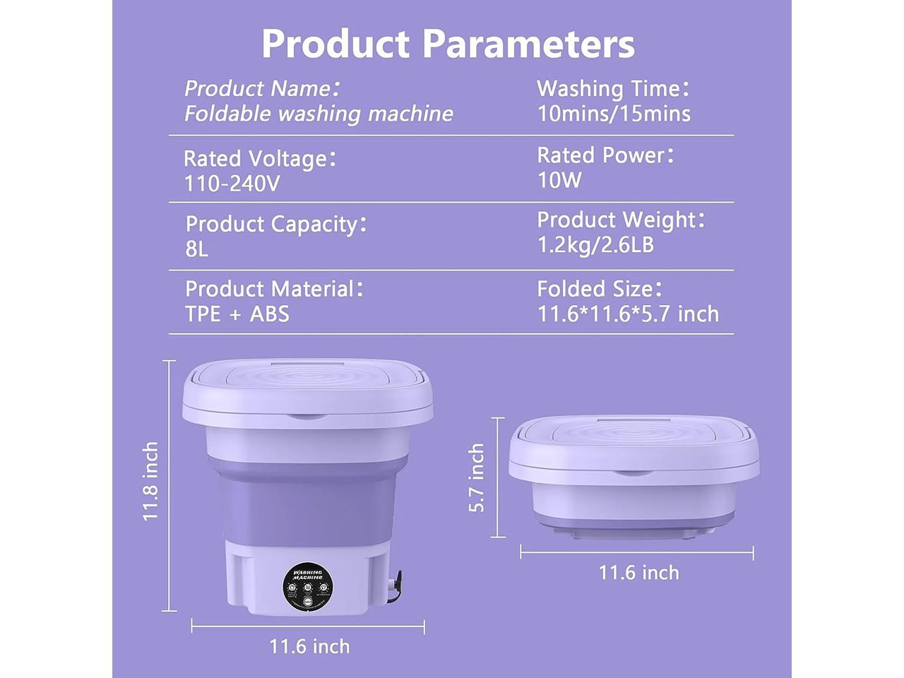 Skládací přenosná pračka je malá a pohodlně se ukládá pod stůl, do koupelny nebo do kufru. Je ideální na koleje, do bytů, karavanů, na kempování, cestování a praní prádla kdykoli a kdekoli.