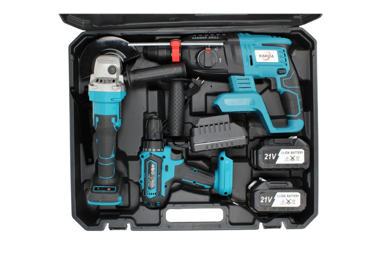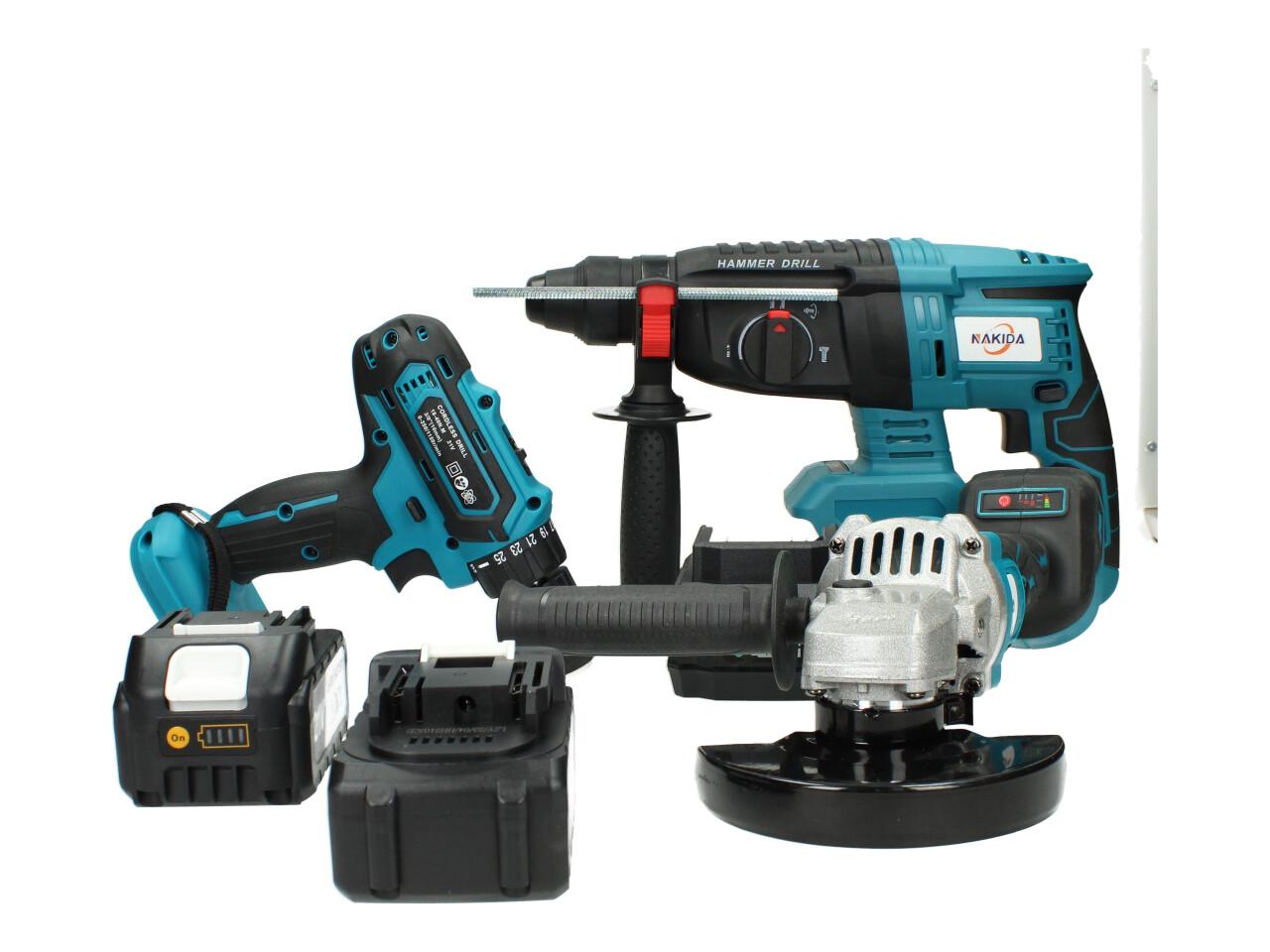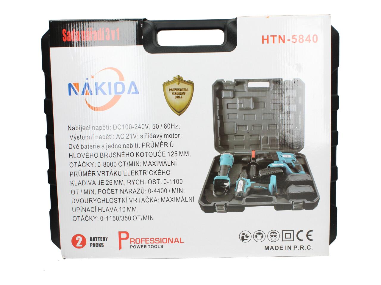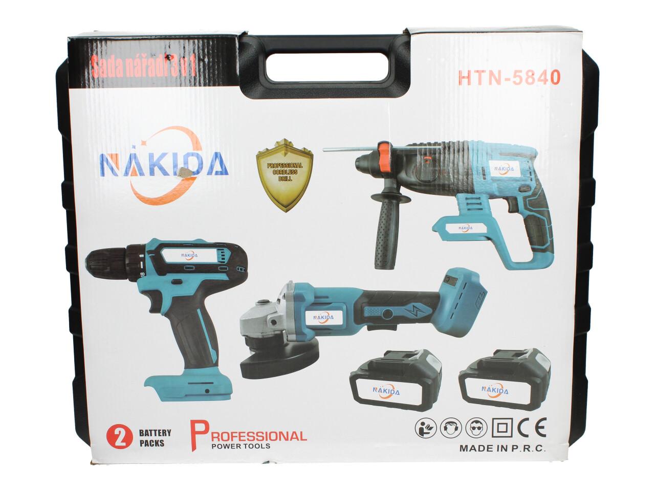 Aku nářadí Nakida sada 3ks včetně baterií Bruska, Bourací kladivo a Vrtačka HTN-5840