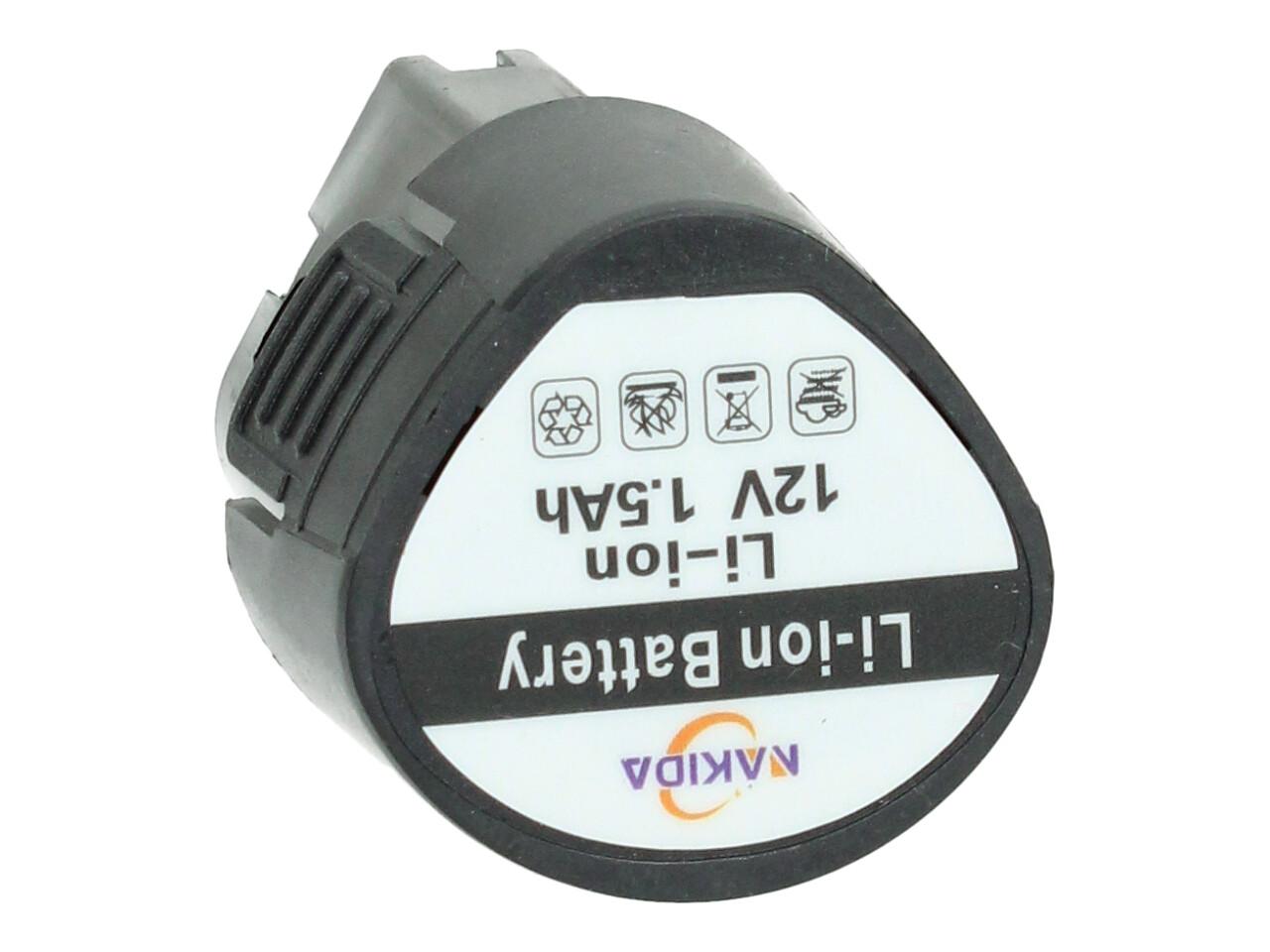 Náhradní baterie Li-ion 12V 1,5Ah Nakida je univerzální akumulátor o napětí 12V a výkonem 1,5Ah
