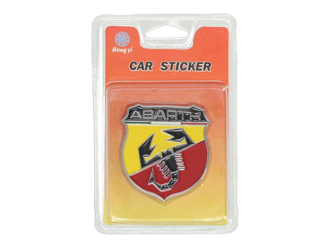 Kovová samolepka Abarth Samolepka se vyznačuje tím, že Vaše auto je vybaveno pohonem čtyř kol. Materiál samolepky je kvalitní, nepoškozuje lak na autě a pevně drží - odolný proti dešti. Samolepka se snadno aplikuje na povrch auta.