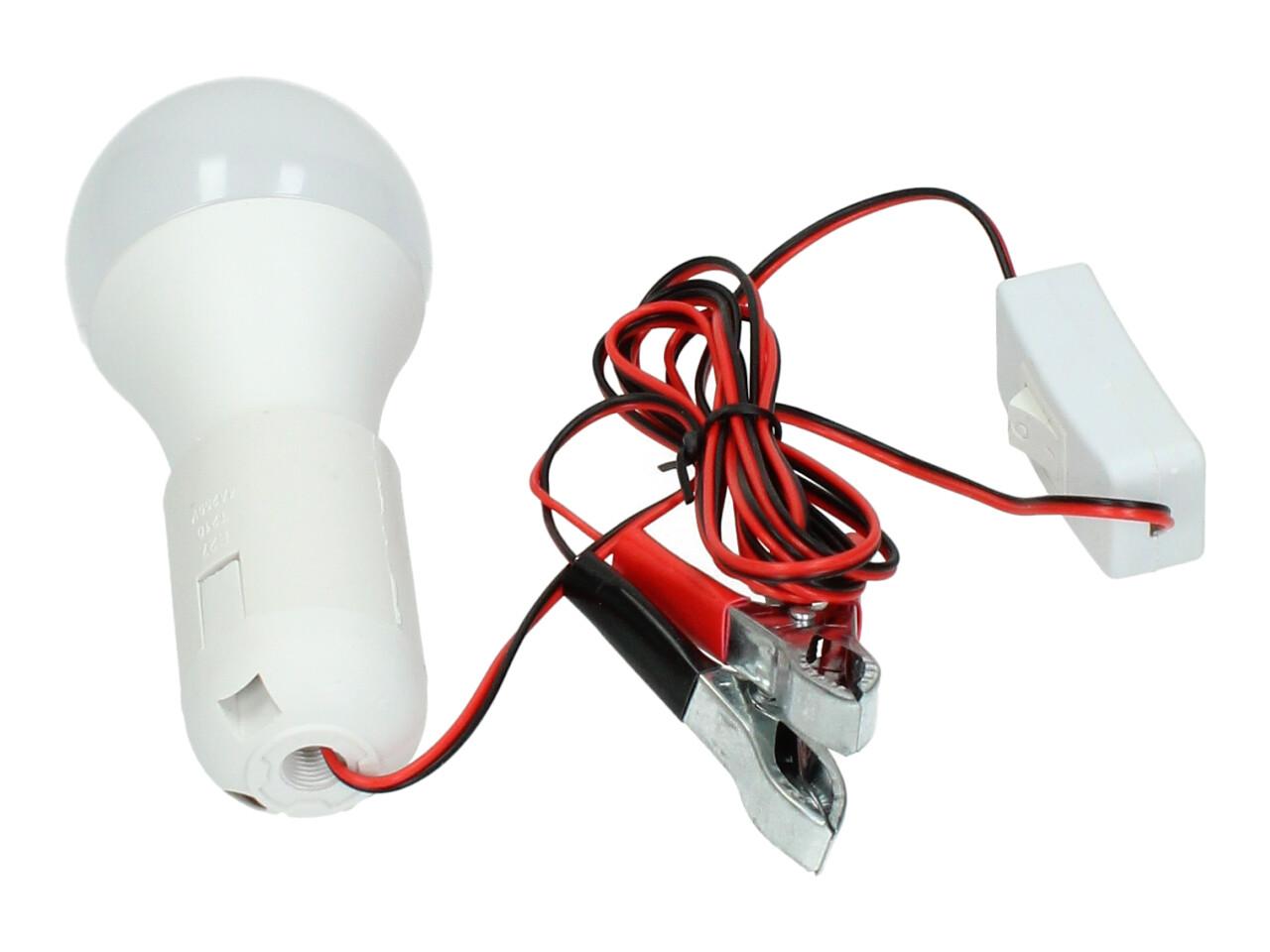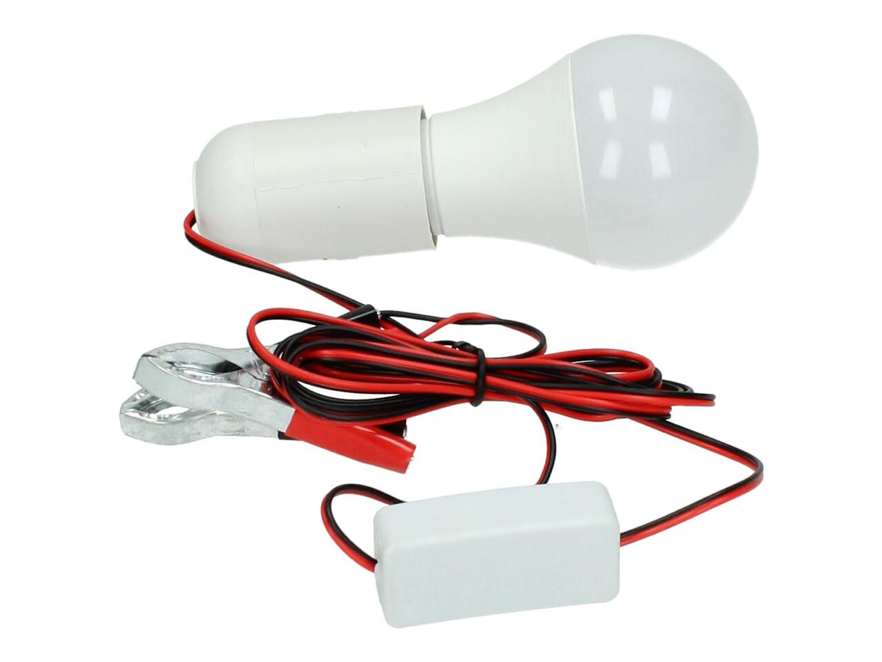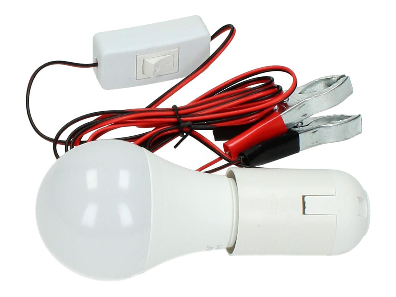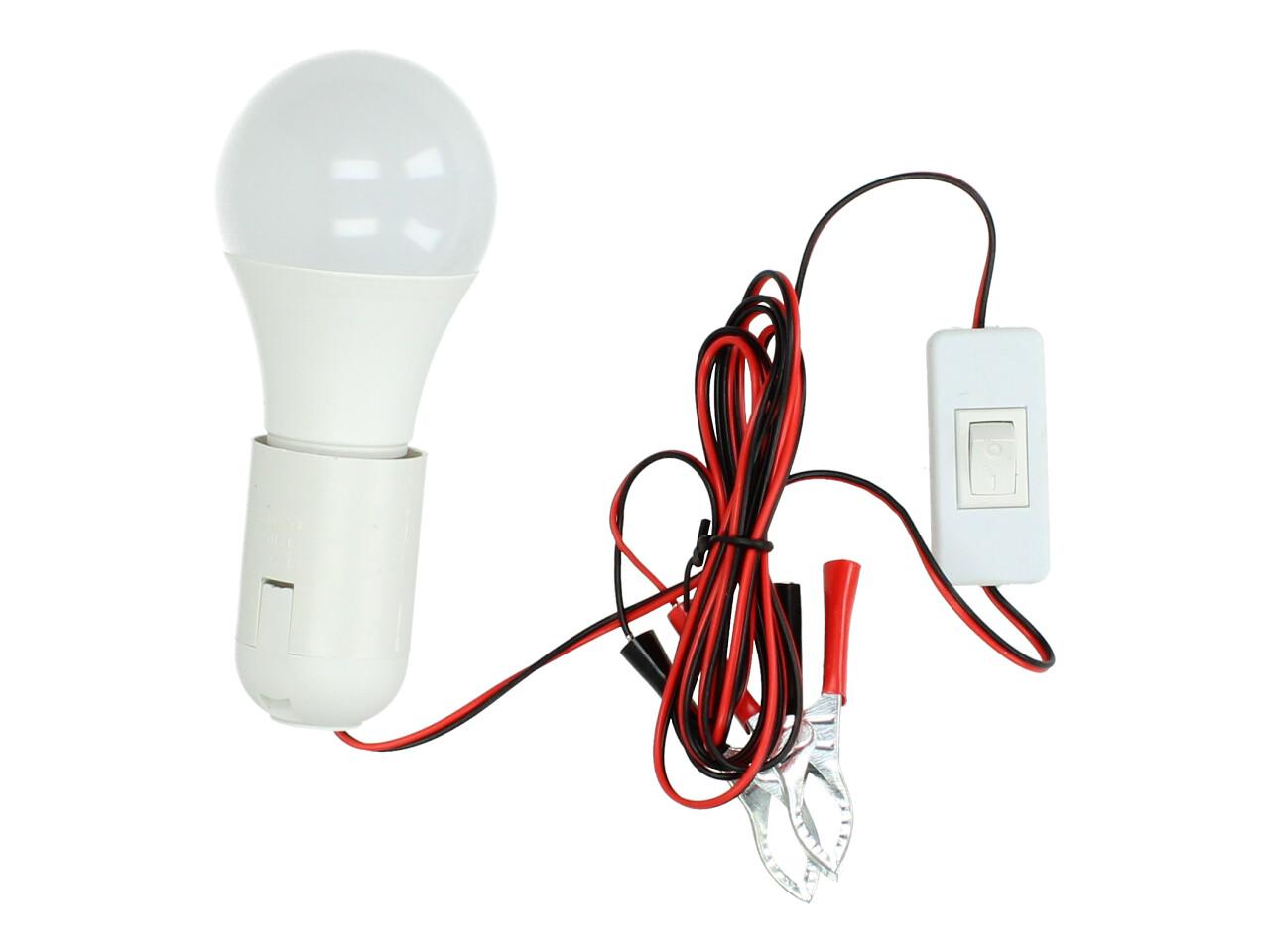 Praktická žárovka 12V 6W s objímkou a svorkami je ideálním řešením pro osvětlení v místech bez elektrické sítě. Stačí ji připojit ke zdroji 12V – například k autobaterii – a okamžitě získáte silné světlo, které využijete na chalupě, v garáži, pod stanem nebo při práci v terénu. Součástí je vypínač přímo na kabelu a svorky pro snadné připojení.