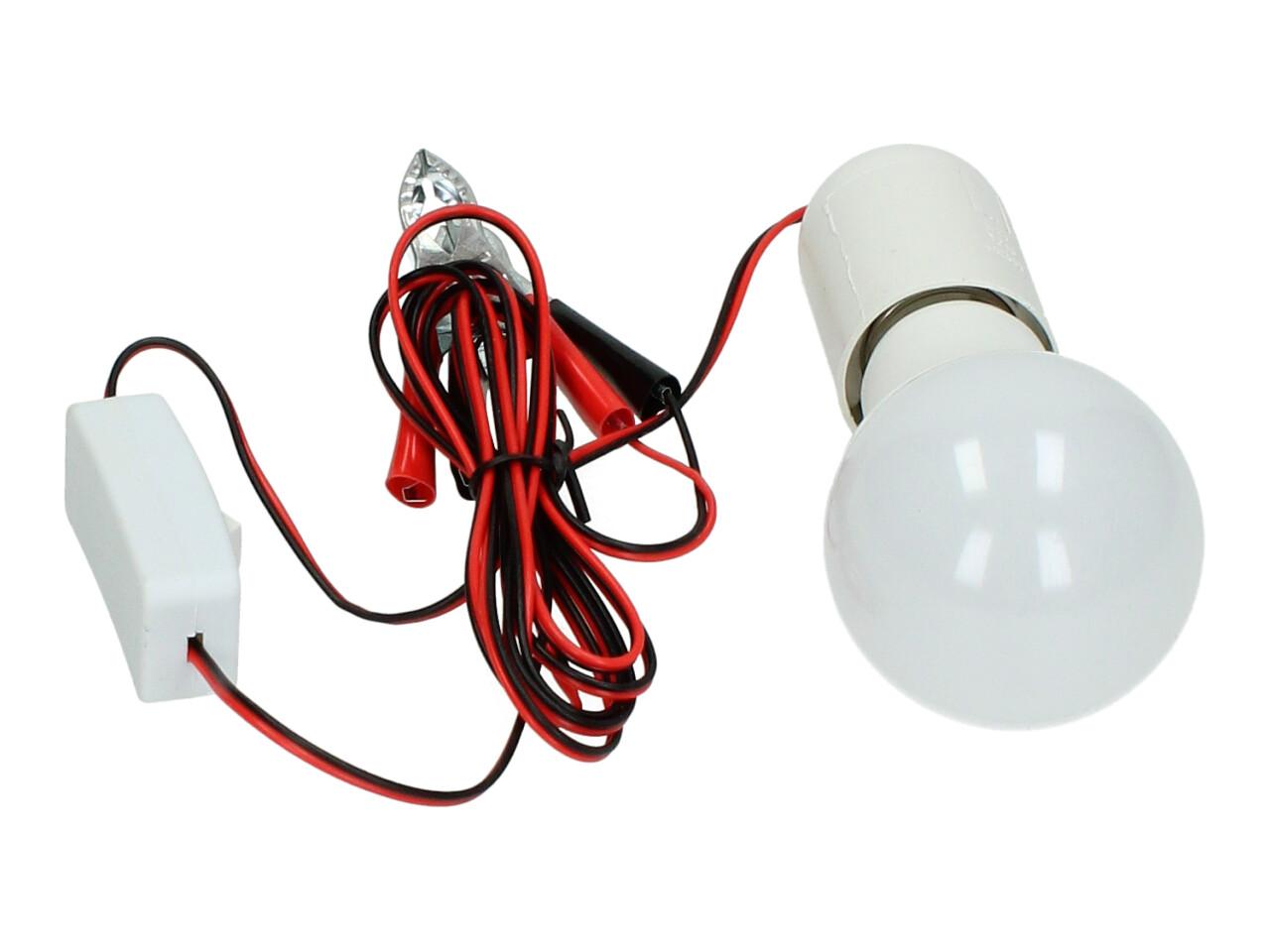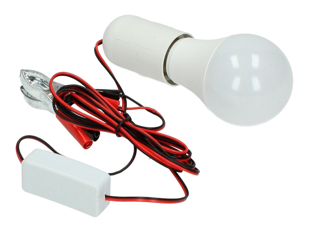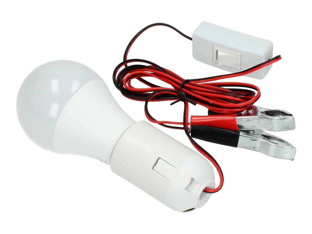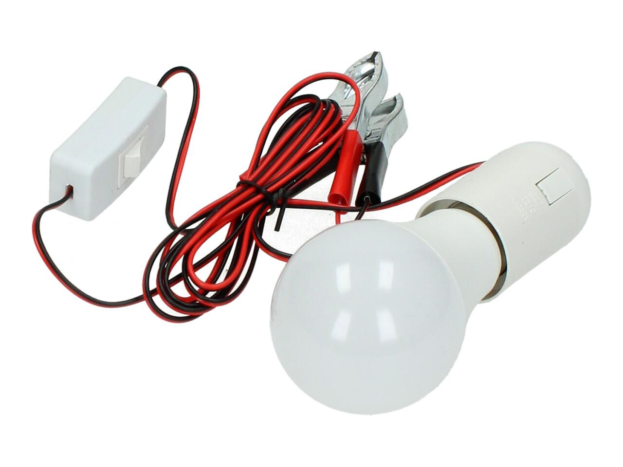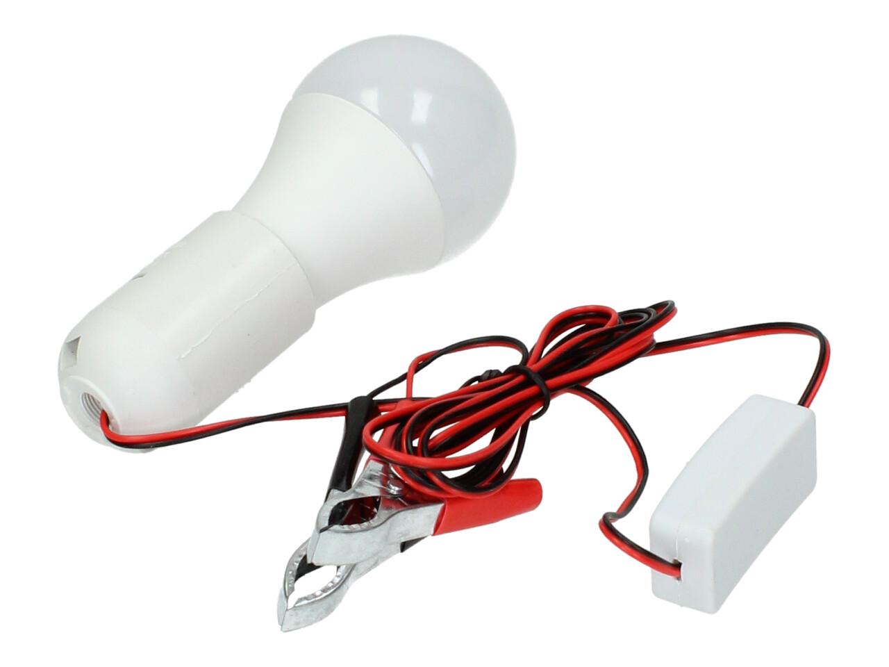 Praktická žárovka 12V 6W s objímkou a svorkami je ideálním řešením pro osvětlení v místech bez elektrické sítě. Stačí ji připojit ke zdroji 12V – například k autobaterii – a okamžitě získáte silné světlo, které využijete na chalupě, v garáži, pod stanem nebo při práci v terénu. Součástí je vypínač přímo na kabelu a svorky pro snadné připojení.