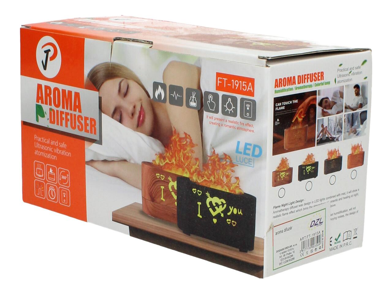 Vylaďte svůj domov do atmosféry pohody a klidu pomocí tohoto krásného difuzéru. V jednom výrobku je spojen výkonný aroma difuzér s unikátním efektem LED plamene. Právě tento efekt se postará o romantickou atmosféru ve vašem obývacím pokoji. Přidáte-li do vody pár kapek esenciálního oleje, aroma difuzér ho působením ultrazvuku rozloží na jemné mikročástice, které nádherně provoní váš byt.
