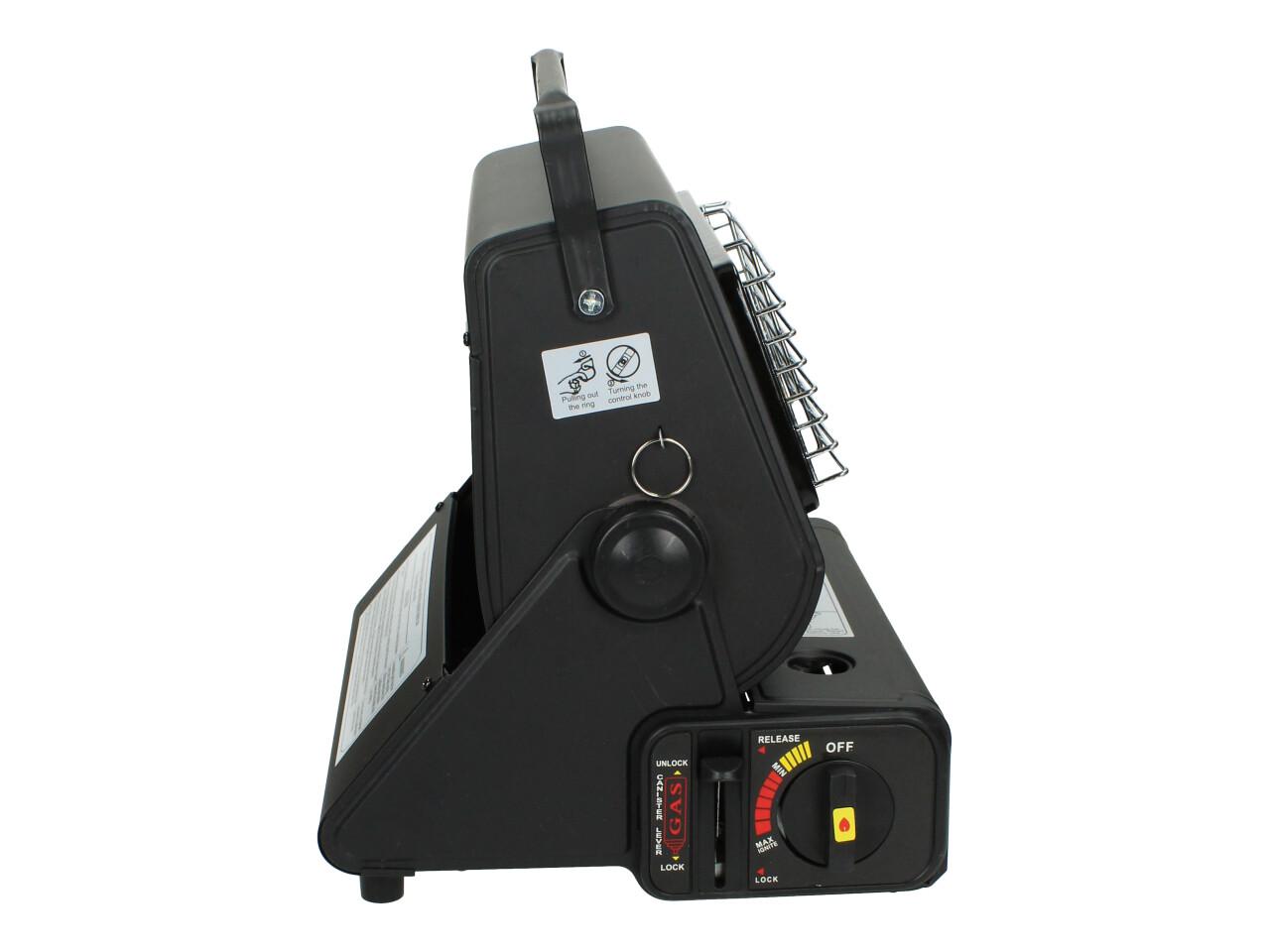 Sporák může také sloužit jako plynový sporák v chladných dnech. Díky speciálnímu mechanismu lze topný panel snadno nastavit do svislé polohy pro extra teplo.