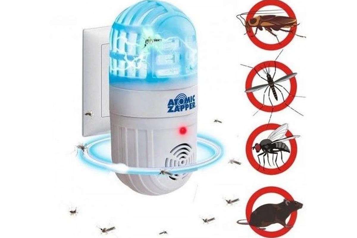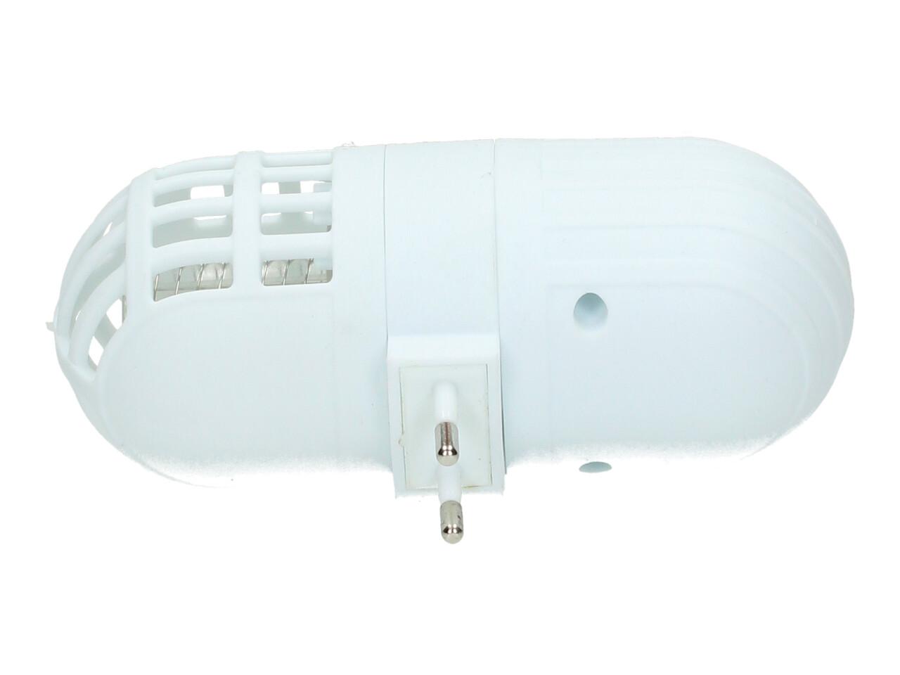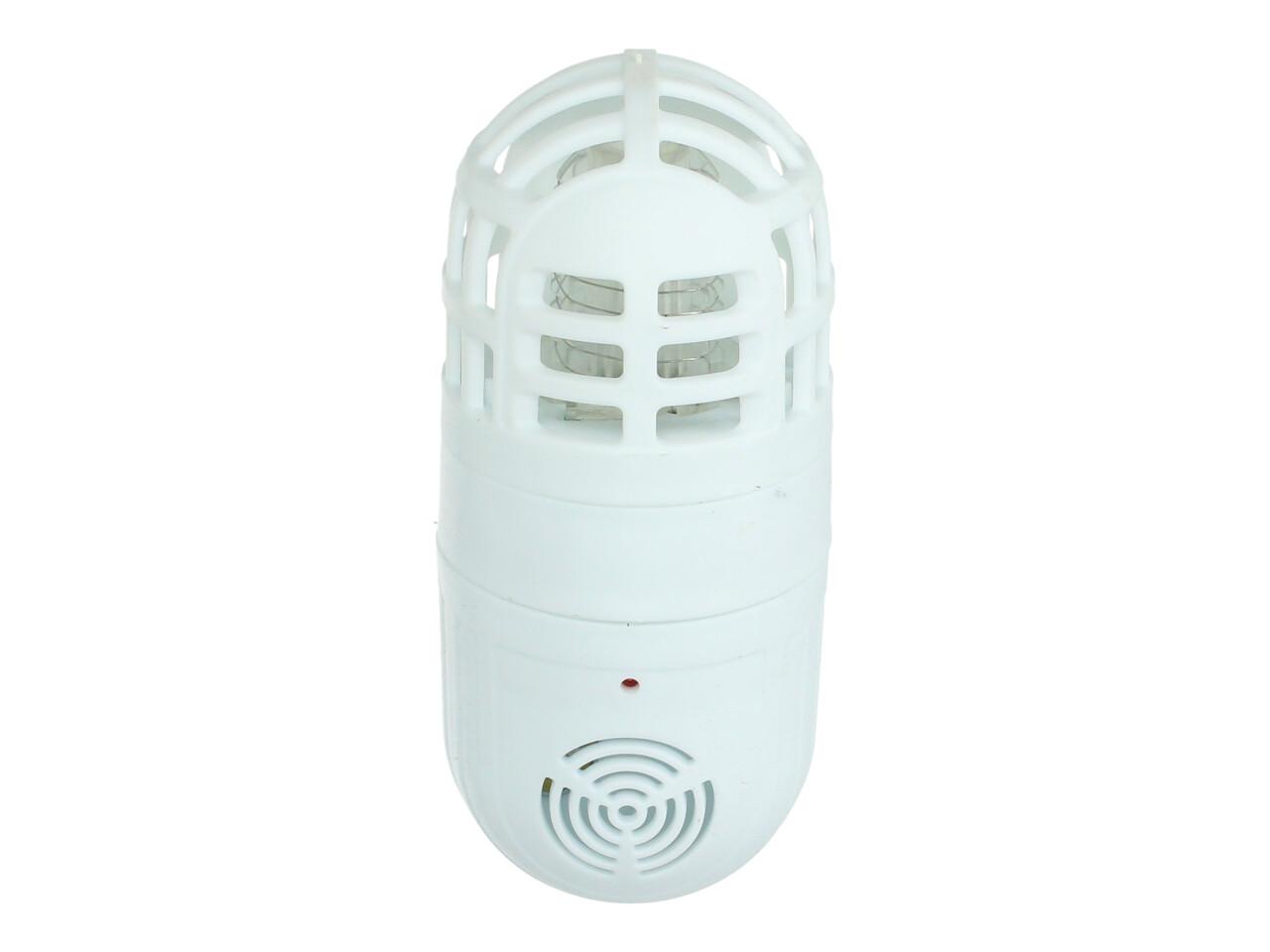 Velmi efektivní hubič polétavého hmyzu (komáři, mouchy) do zásuvky 230V. Speciální modré světlo přitahuje tento polétavý hmyz a ultrazvukové vlny účinně zabíjí přilákaný hmyz. Zařízení je bezpečné a má velmi malou, zanedbatelnou spotřebu el. energie.