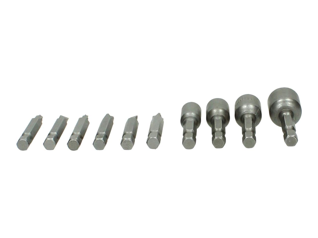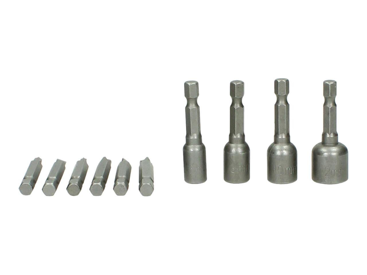 Sada bitů do Aku Vrtačky 10kusů a to křížový šroubovák, plochý šroubovák, a nástrčné klíče 8