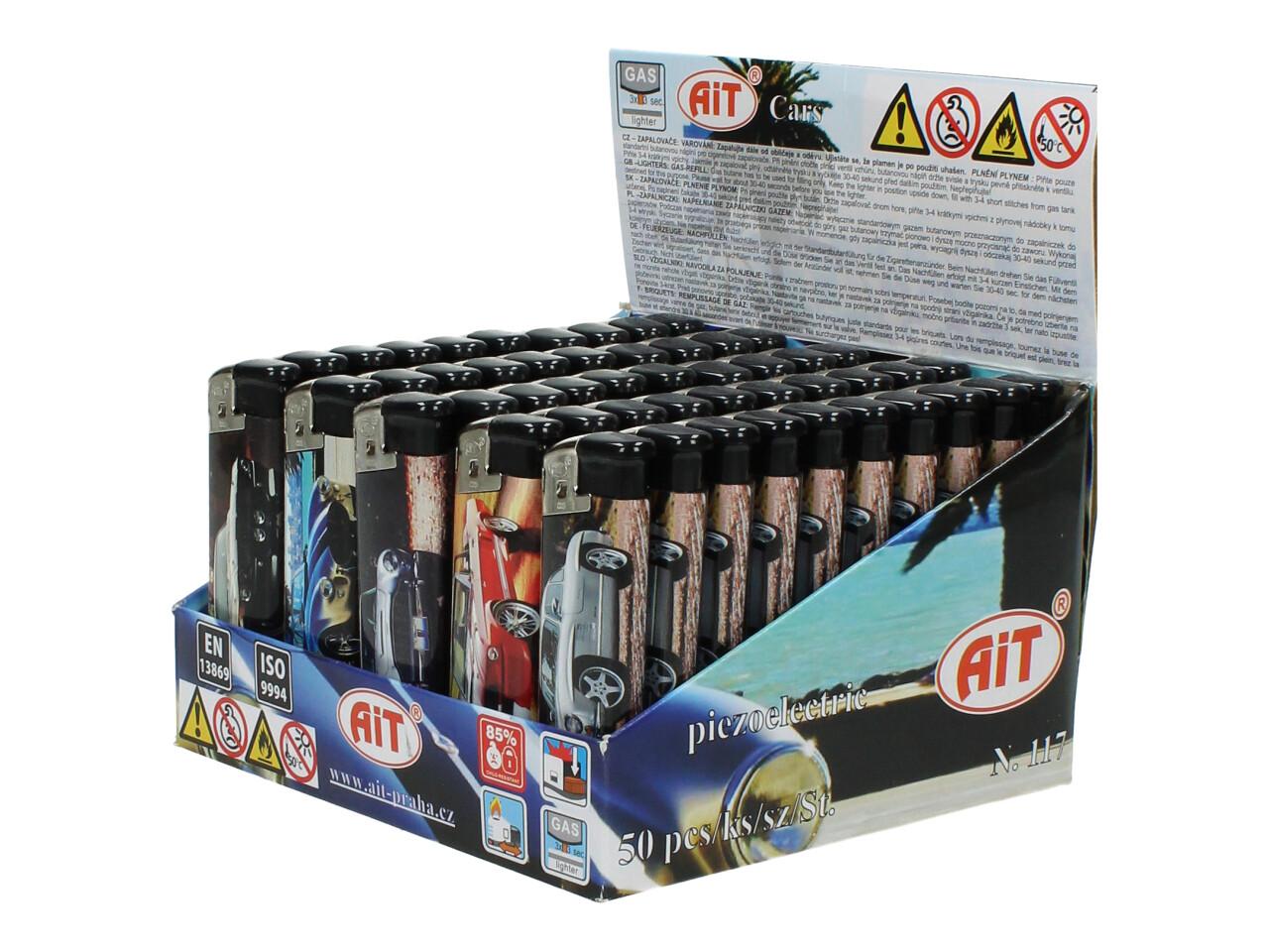 Sada zapalovačů rychlá auta 50 ks je kolekce, se kterou zaručeně překvapíte svého partnera, kamaráda, sourozence nebo kolegy z práce. Zapalovač má zajímavý a přitažlivý potisk, který na sebe jistě upoutá nejen mužskou pozornost. Balení obsahuje 50 kousků zapalovačů a 5 různých potisků. Každý zapalovač má dvě strany s rozdílným potiskem ale stejným autem.