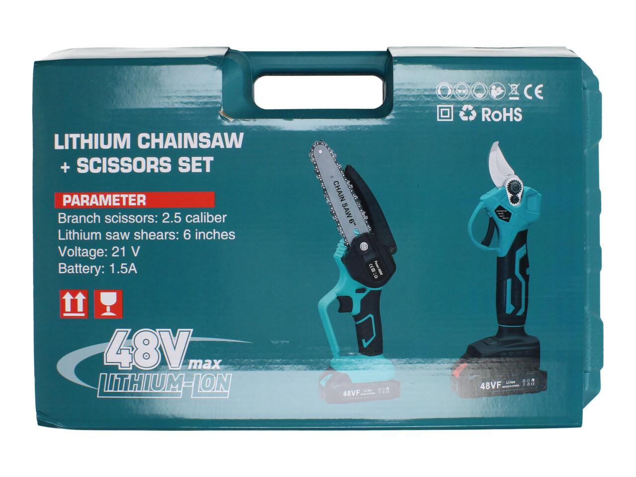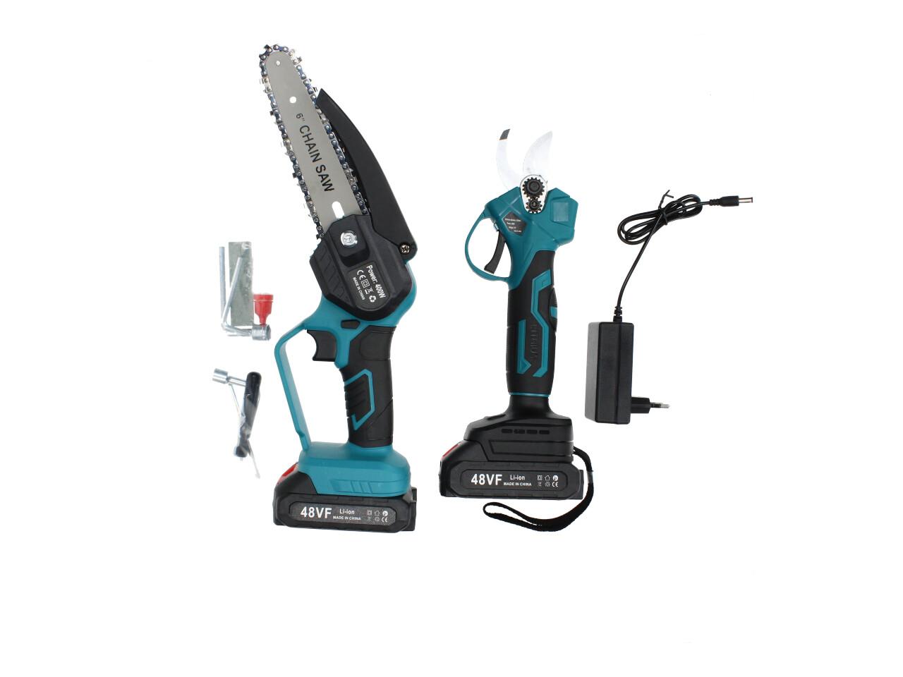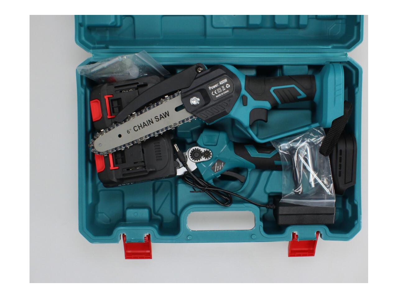 Dobrá volba pro toho, kdo chce ušetřit. Aku pila s lištou 6 palců a Aku silné nůžky, to vše včetně baterií a nabíječky zabalené v plastovém kufru, co se snadno přenáší
