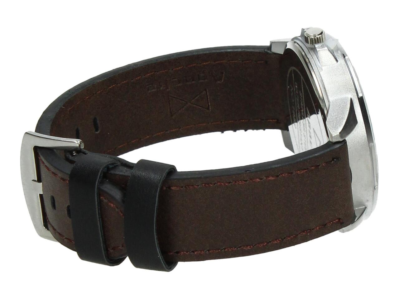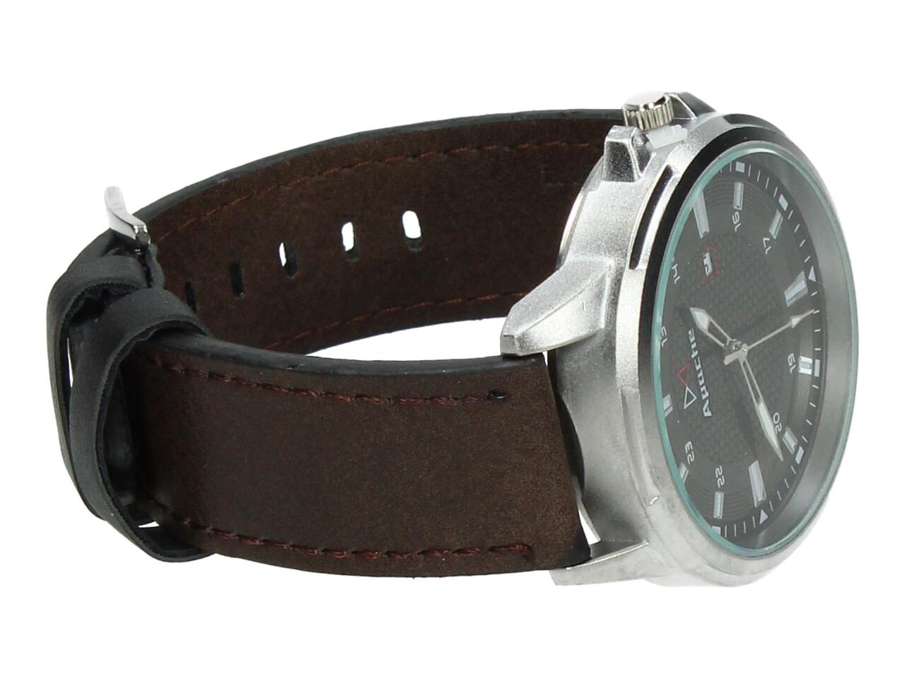 Vodotěsné značkové hodinky Apache s čerým ciferníkem a stříbrným okruhem a prošívaným řemínkem. Čistý luxusní design.