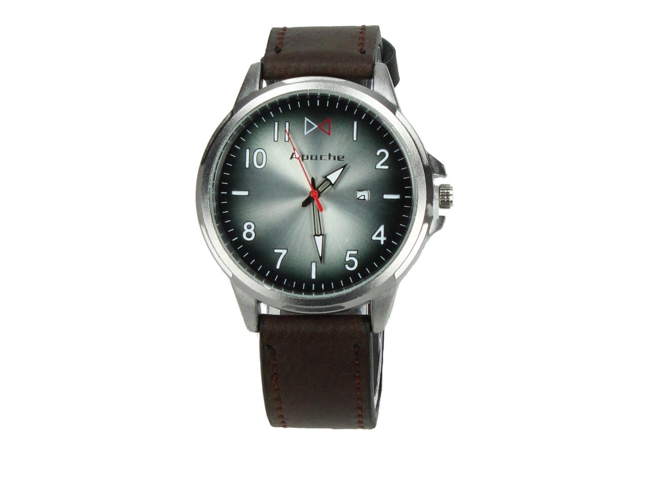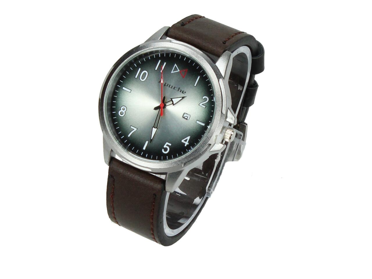 Vodotěsné značkové hodinky Apache se zeleným ciferníkem a stříbrným okruhem a prošívaným řemínkem