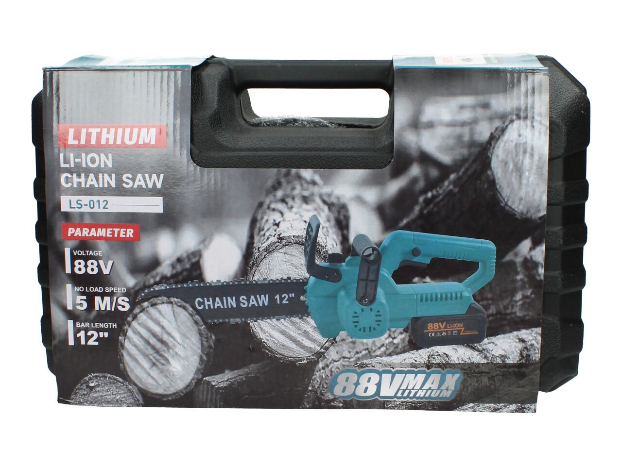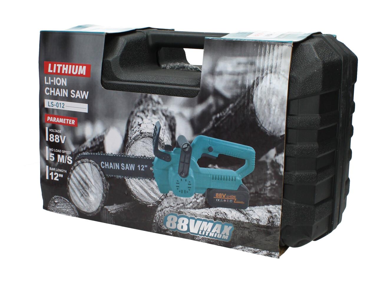 Aku pila s přímazem řetězu s lištou o délky 12 palců včetně nabíječky a 2x akumuklátorů v kufříku